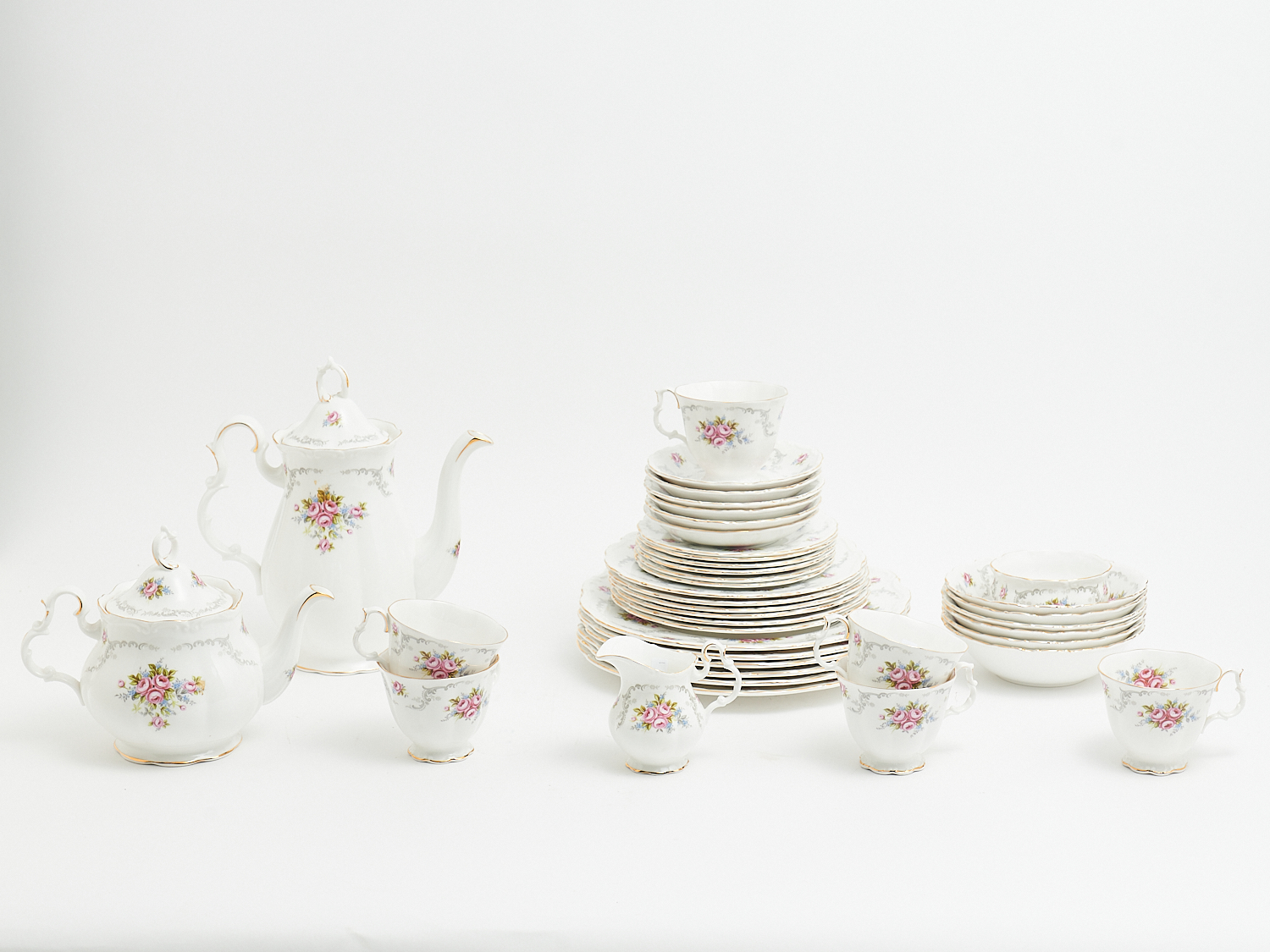 A ROYAL ALBERT "TRANQUILITY" DINNER SET FOR SIX, LEONARD JOEL LOCAL DELIVERY: MEDIUM