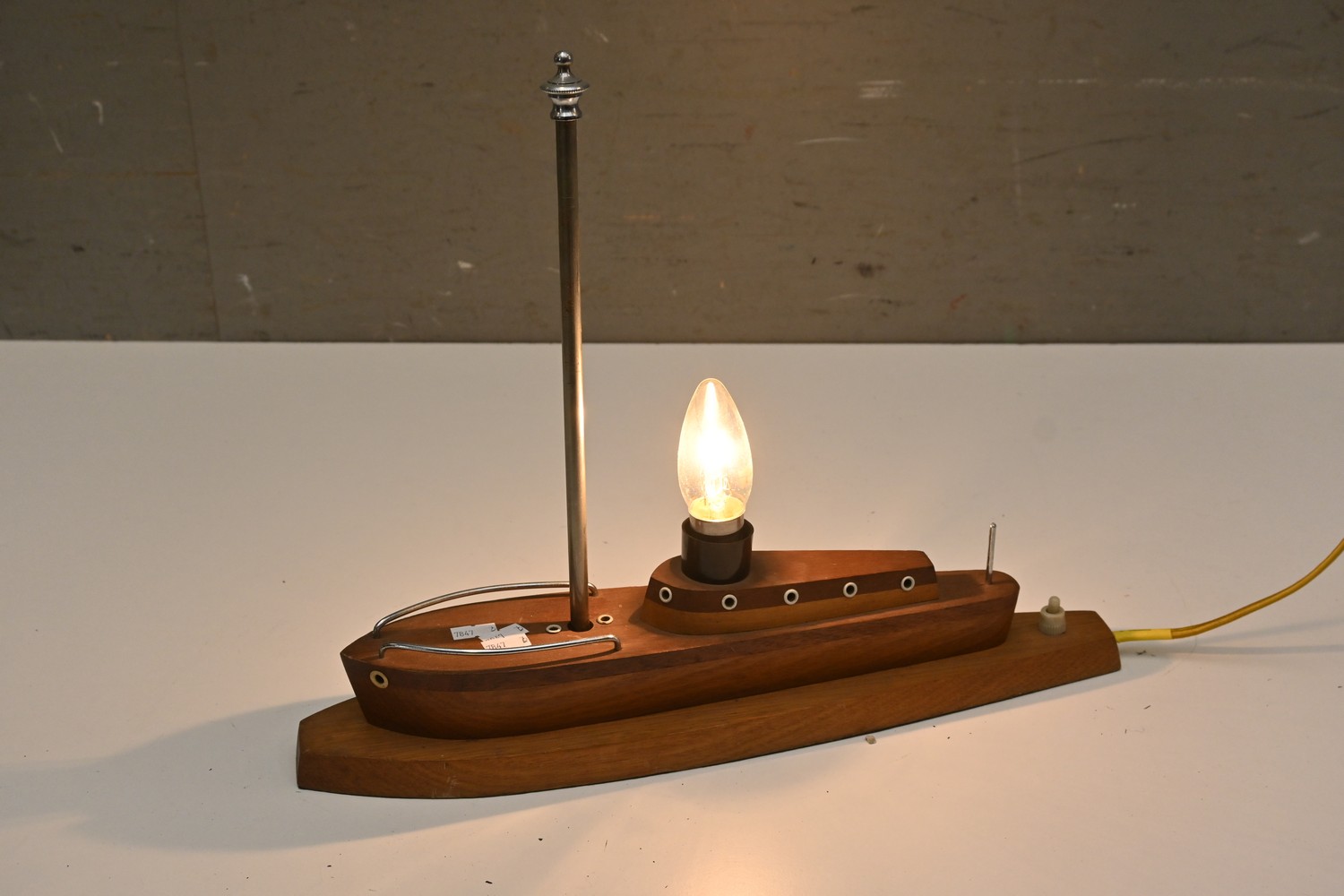 A TIMBER SHIP FORM TABLE LAMP (A/F) ( 35H CM)