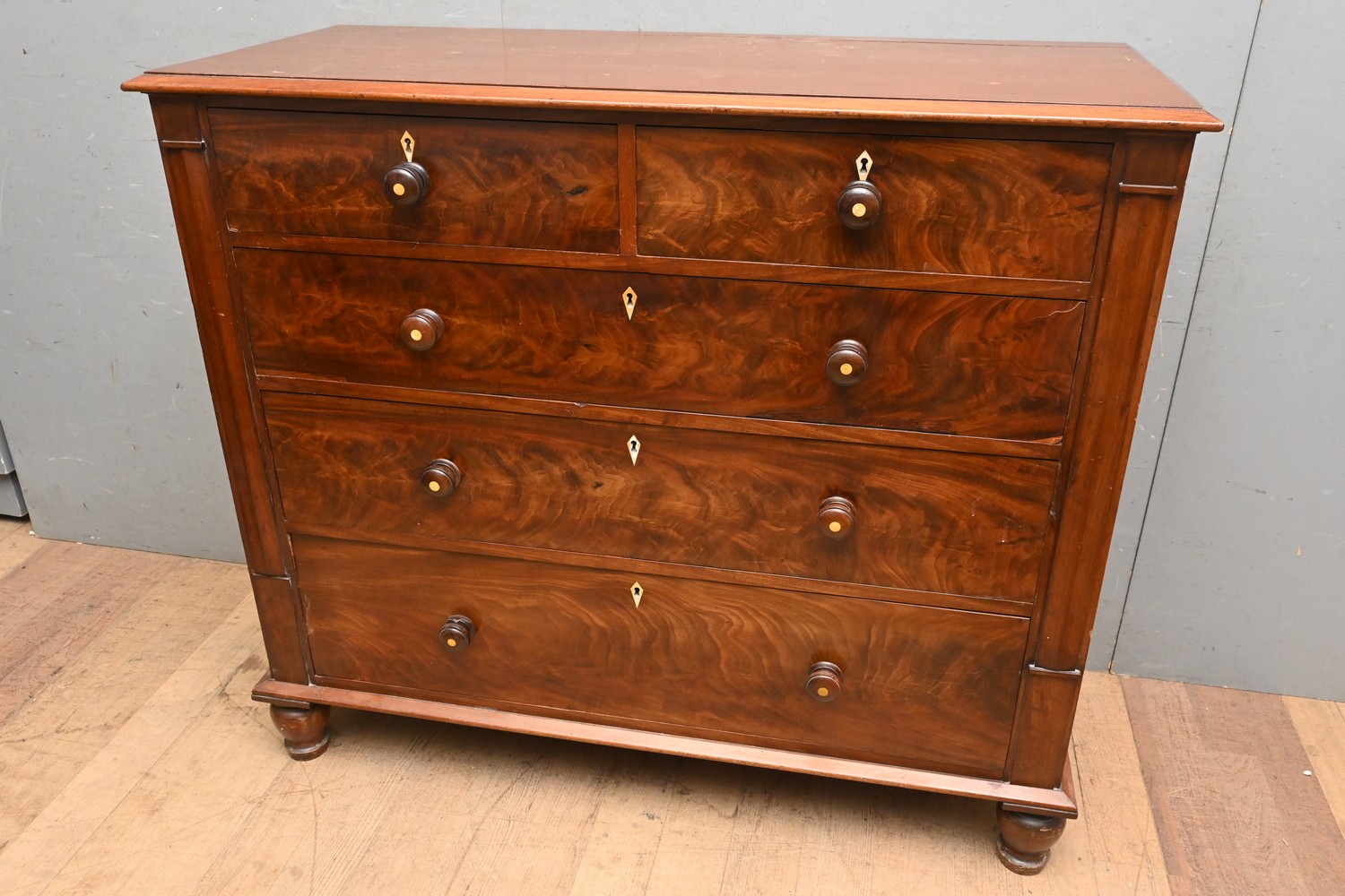 A 19TH CENTURY WALNUT VENEER FIVE DRAWER CHEST (A/F) (110H X 126W X 54D CM) (PLEASE NOTE THIS HEAVY ITEM MUST BE REMOVED BY CLIENTS OR CARRIERS AT THE CUSTOMERS EXPENSE. LEONARD JOEL STAFF CANNOT ASSIST CARRYING THIS ITEM)
