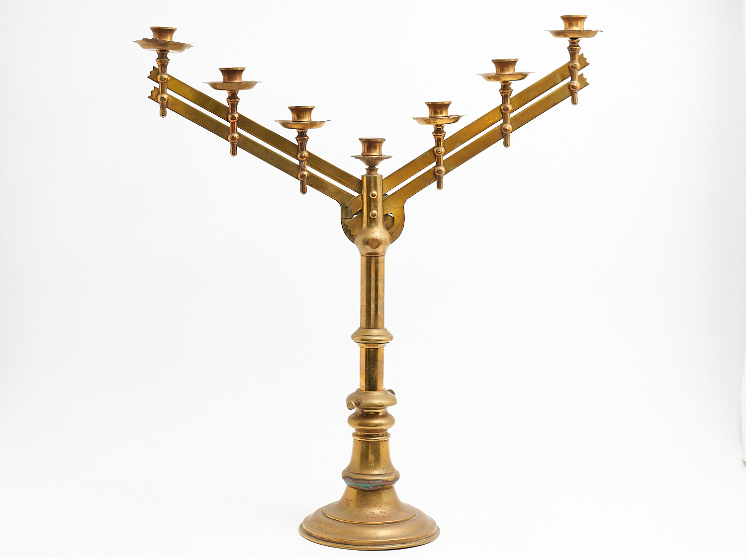 A SEVEN SCONCE BRASS CANDELABRA H.61.5CM X W.61CM, LEONARD JOEL LOCAL DELIVERY: MEDIUM