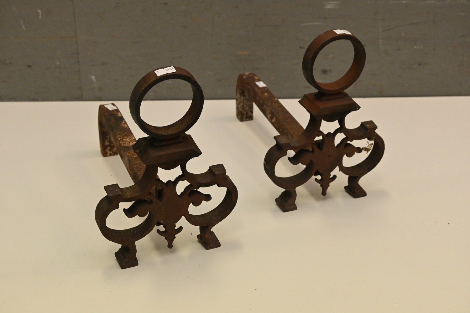 A PAIR OF CAST IRON FIRE DOGS (25H X 18W X 38D CM) (LEONARD JOEL DELIVERY SIZE: LARGE)