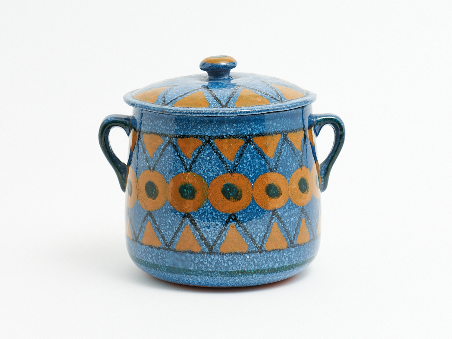AN ITALIAN VULCANIA LIDDED CANISTER H.20CM, LEONARD JOEL LOCAL DELIVERY: SMALL