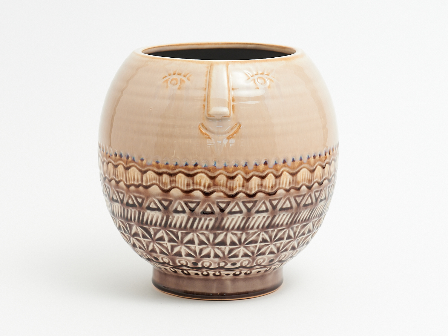 A CERAMIC POT WITH FACE, UNSIGNED H.23.5CM, LEONARD JOEL LOCAL DELIVERY: SMALL
