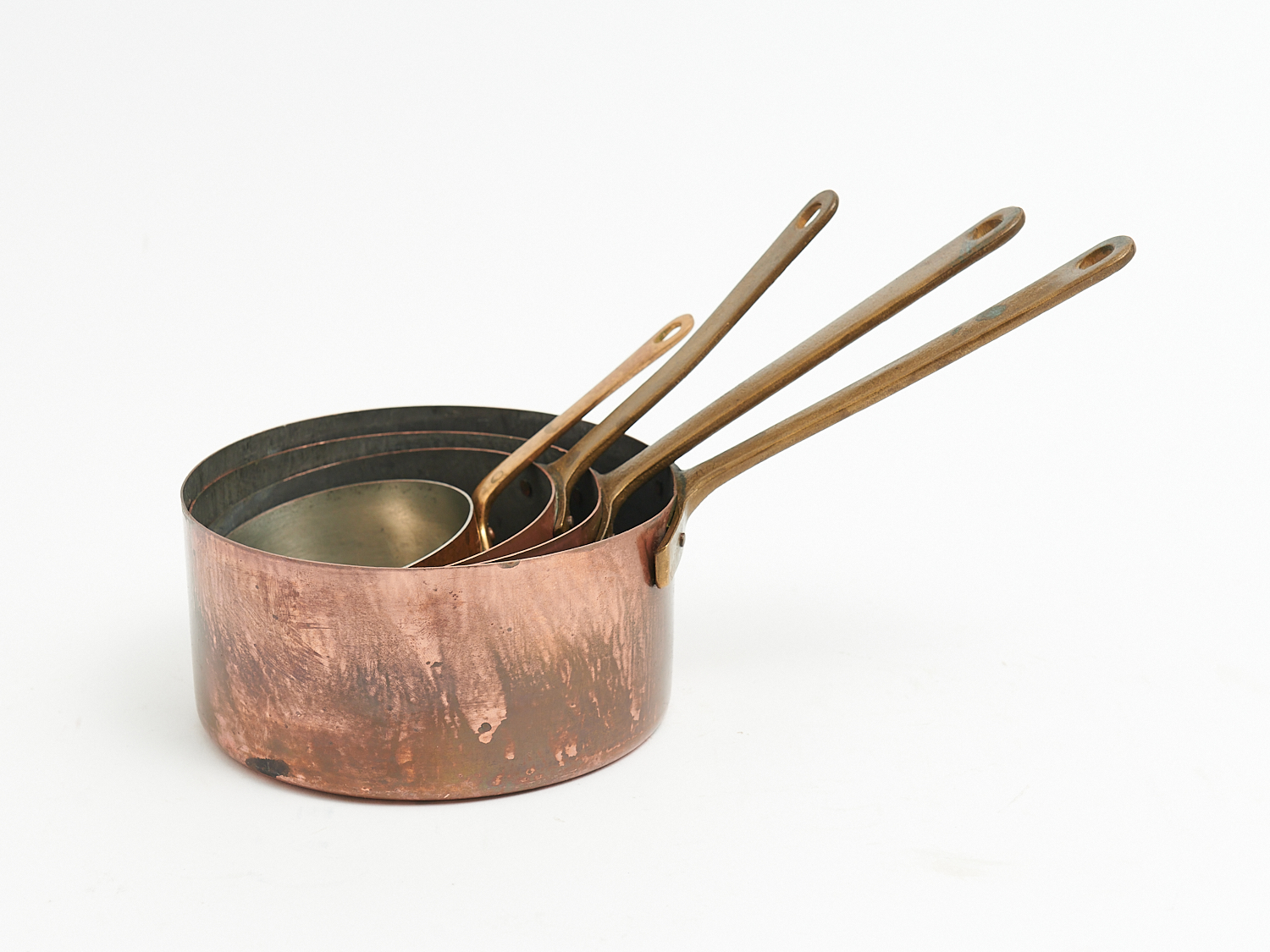 A GRADUATED SET OF FOUR FRENCH COPPER SAUCEPANS DIA.16CM (LARGEST), LEONARD JOEL LOCAL DELIVERY: MEDIUM