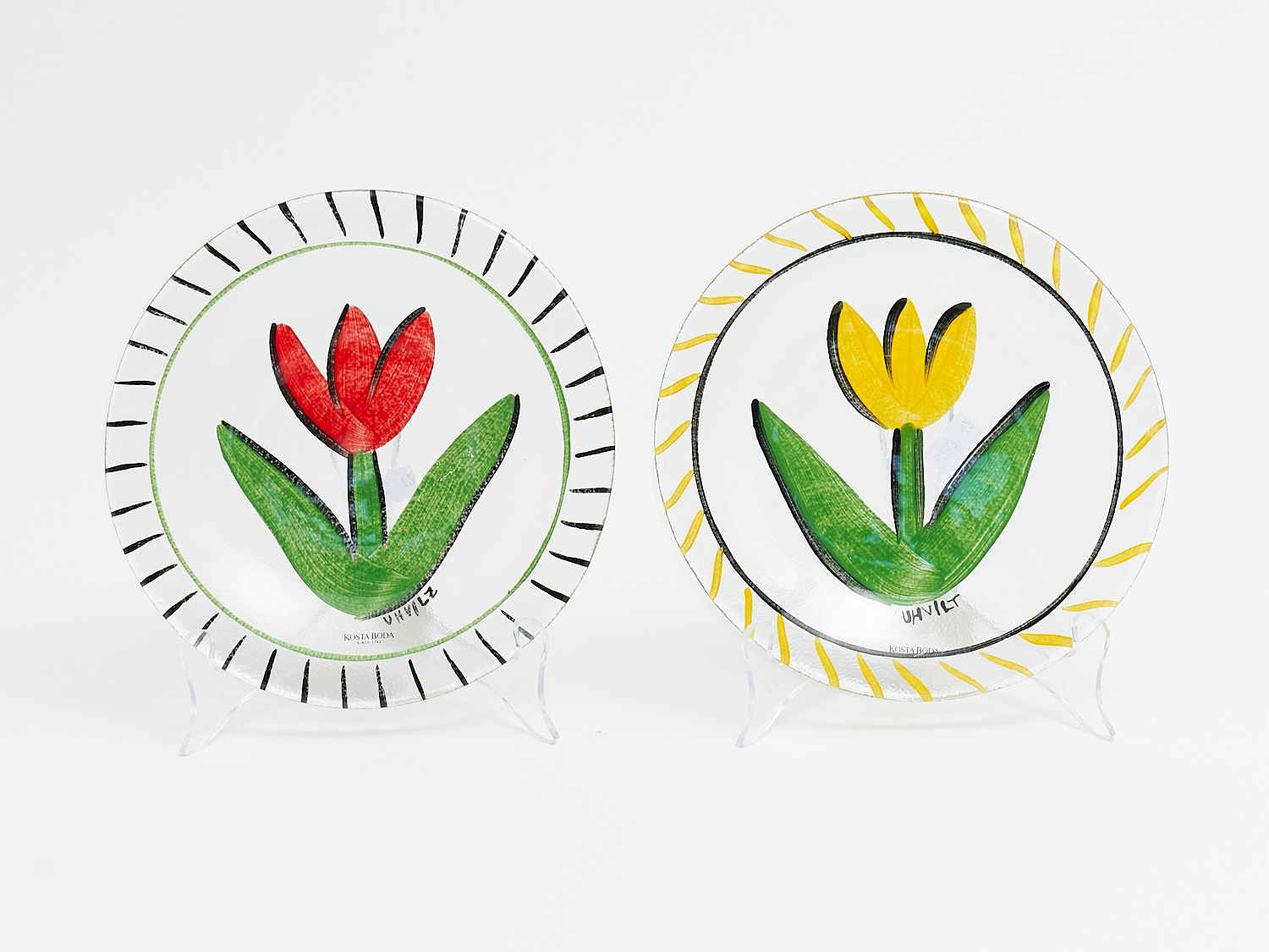 A PAIR OF ULRICA HYDMAN VALLIEN KOSTA BODA GLASS PLATES, DIA.19CM, LEONARD JOEL LOCAL DELIVERY: SMALL
