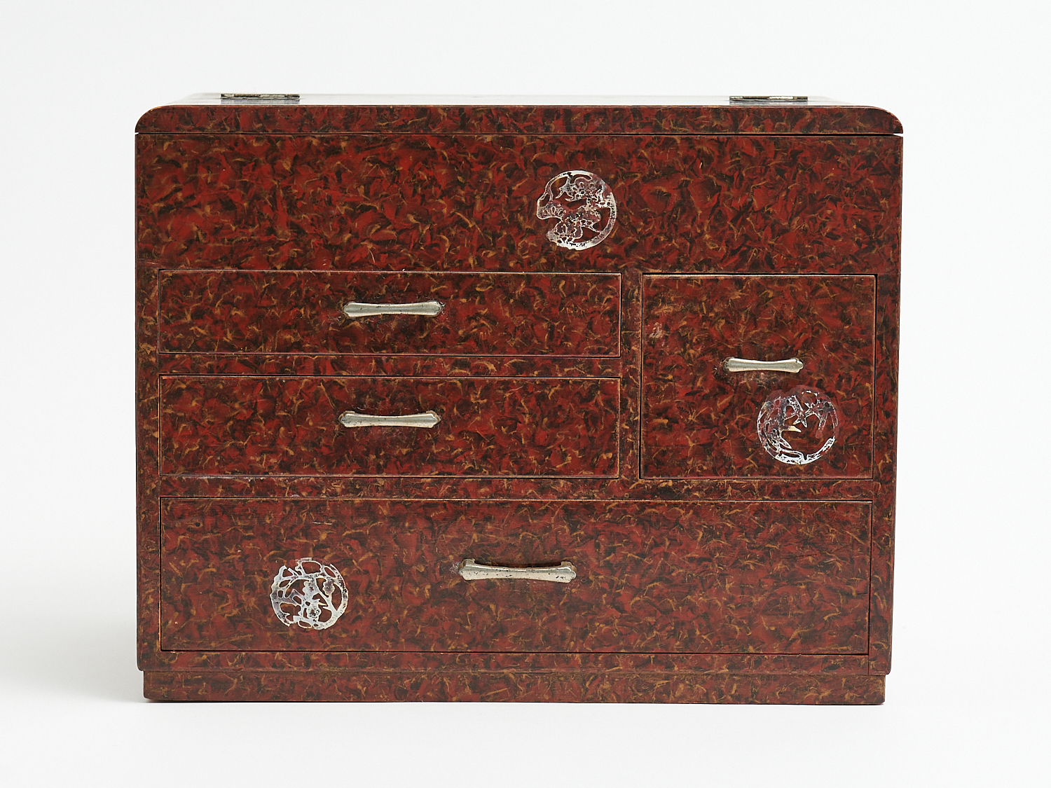 A JAPANESE LAQUERED WOOD FIVE DRAWER SEWING CABINET H.23CM X W.29CM X D.18CM, LEONARD JOEL LOCAL DELIVERY: MEDIUM