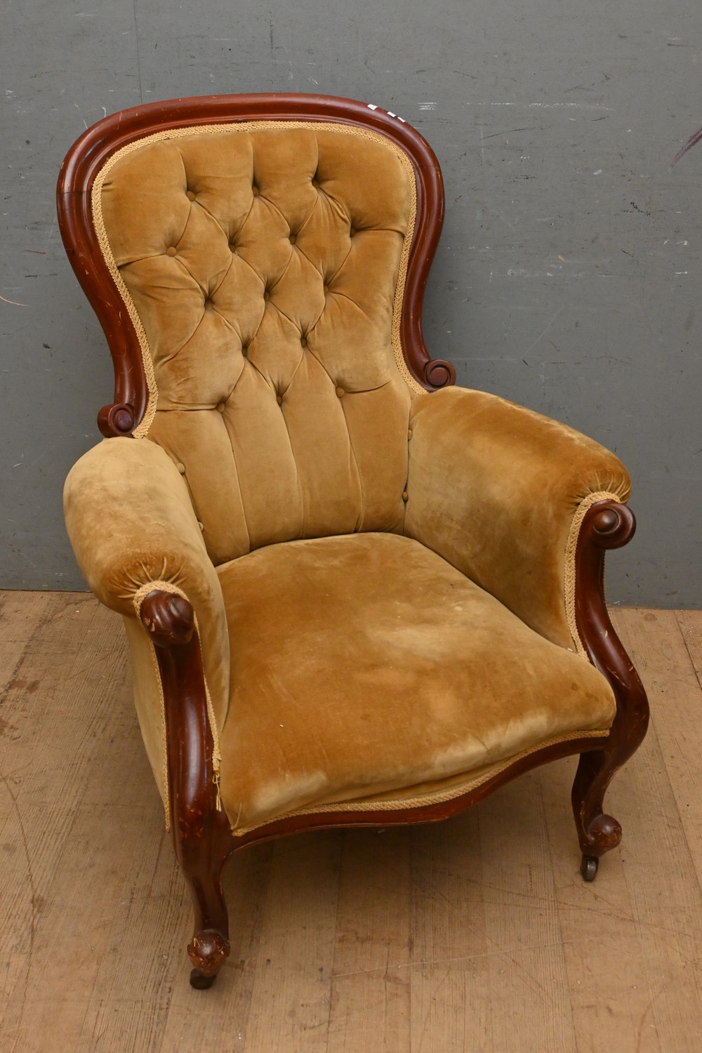 A VICTORIAN BUTTONBACK ARMCHAIR (A/F) (102H X 81W X 84D CM) (LEONARD JOEL DELIVERY SIZE: X-LARGE)