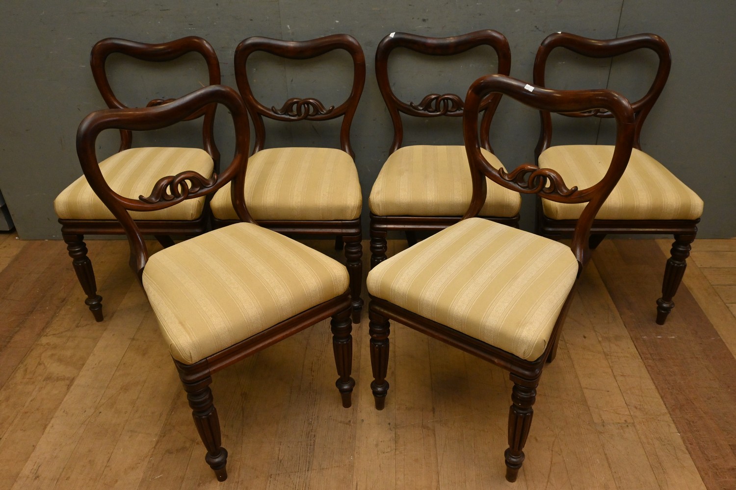 A SET OF SIX VICTORIAN ROSEWOOD DINING CHAIRS (80H X 45W X 54D CM) (LEONARD JOEL DELIVERY SIZE: X-LARGE)