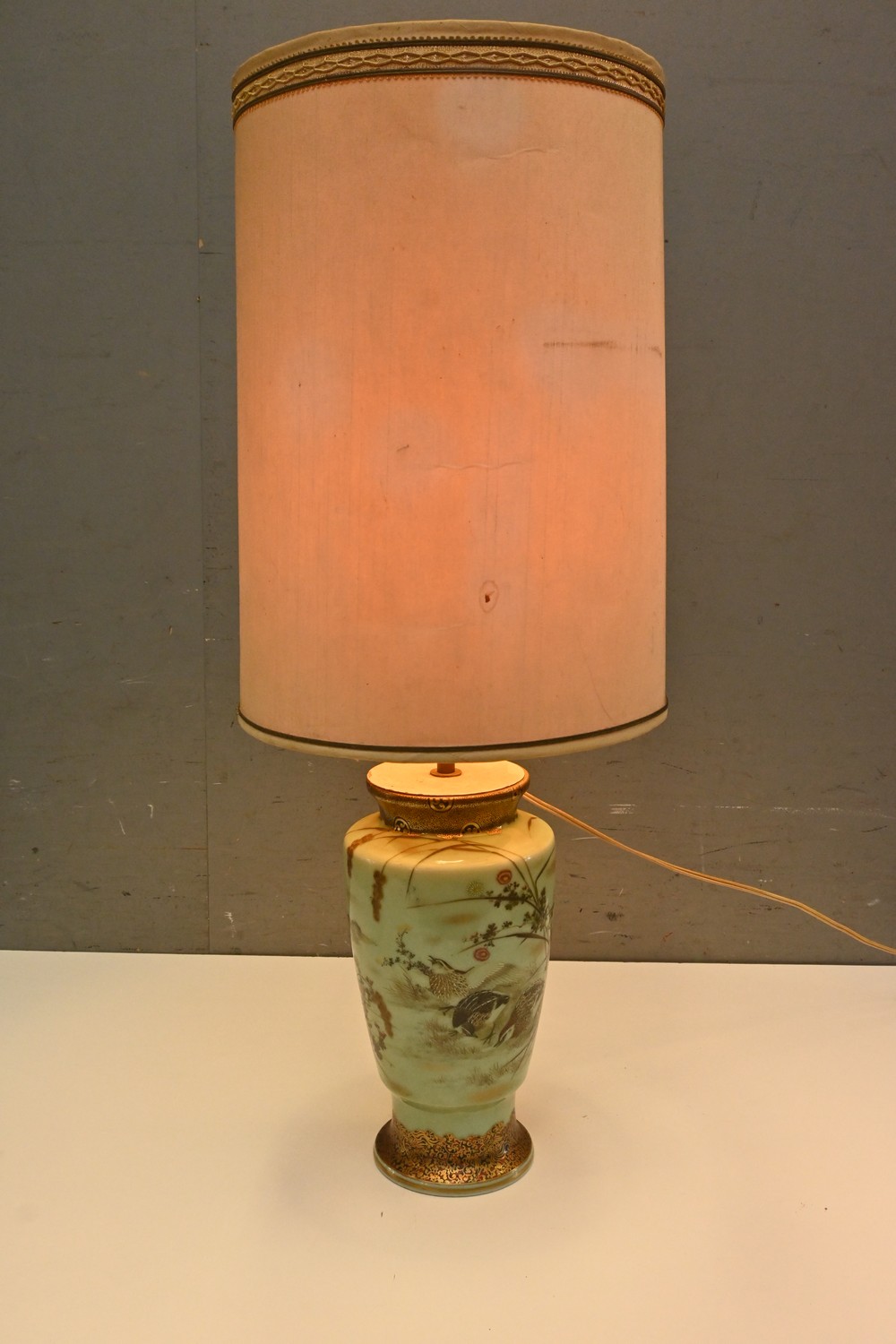 A CHINOISERIE STYLE TALBE LAMP WITH SHADE (A/F) (85H X 32D CM) (LEONARD JOEL DELIVERY SIZE: LARGE)