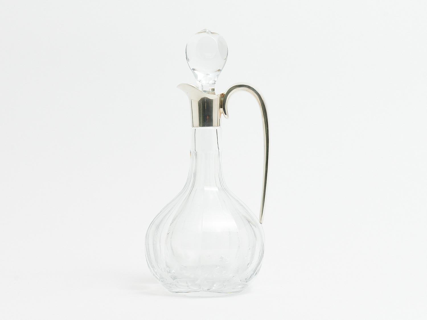 AN ART DECO 925 SILVER HANDLED CUT CRYSTAL CLARET JUG H.28.5CM, LEONARD JOEL LOCAL DELIVERY: SMALL
