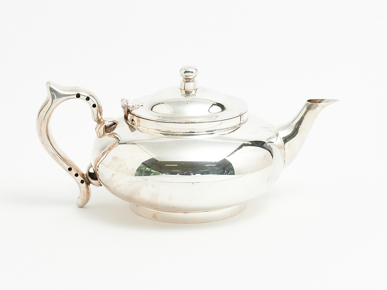 A ROBUR CHALLENGE SILVER PLATE TEAPOT WITH ORIGINAL INFUSER, LEONARD JOEL LOCAL DELIVERY: SMALL