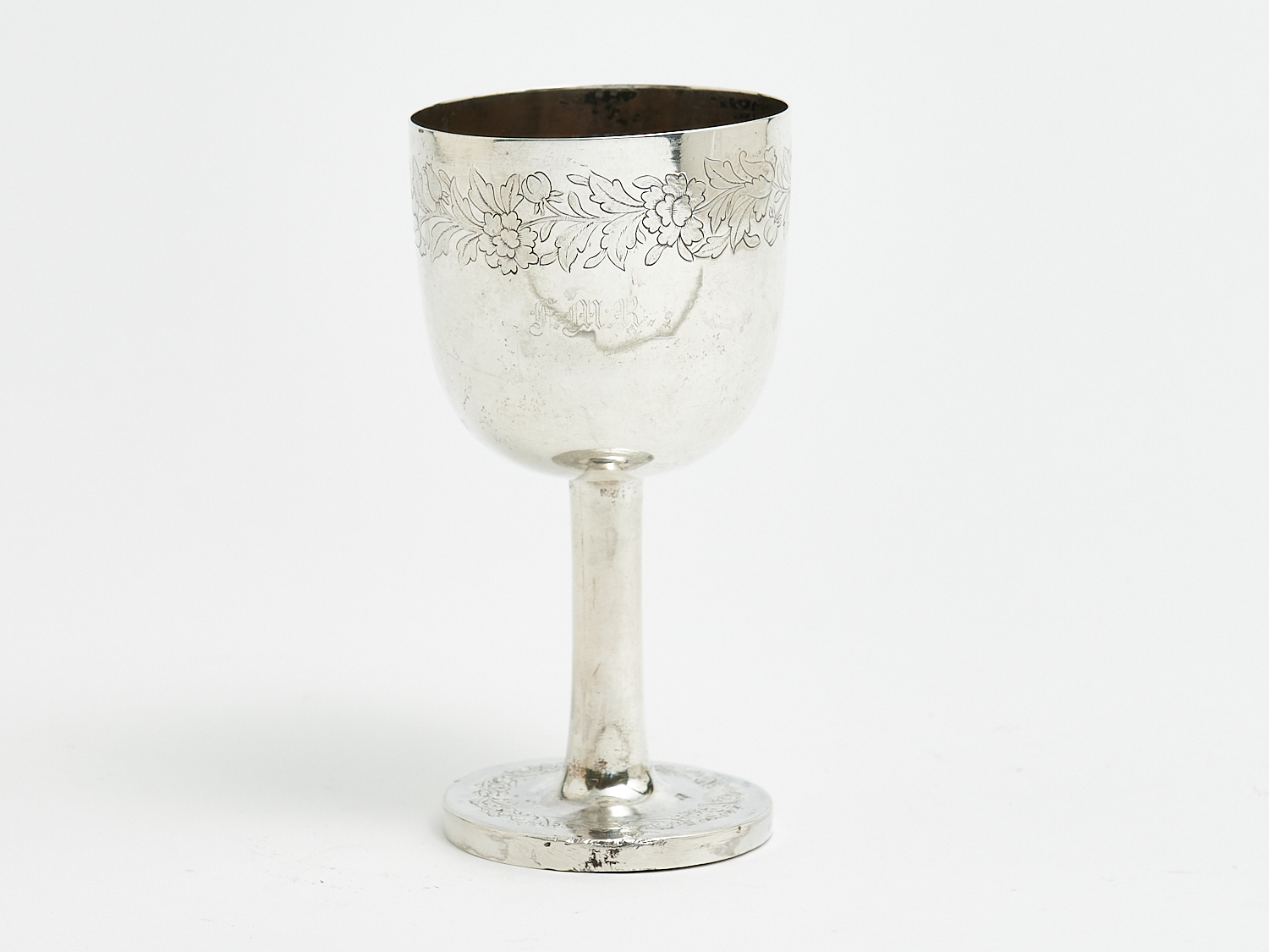 A 19TH CENTURY CHINESE HALLMARKED SILVER GOBLET WITH ENGRAVED FLORAL DECORATIONS – 107 GRAMS H.13.5CM, LEONARD JOEL LOCAL DELIVERY: SMALL