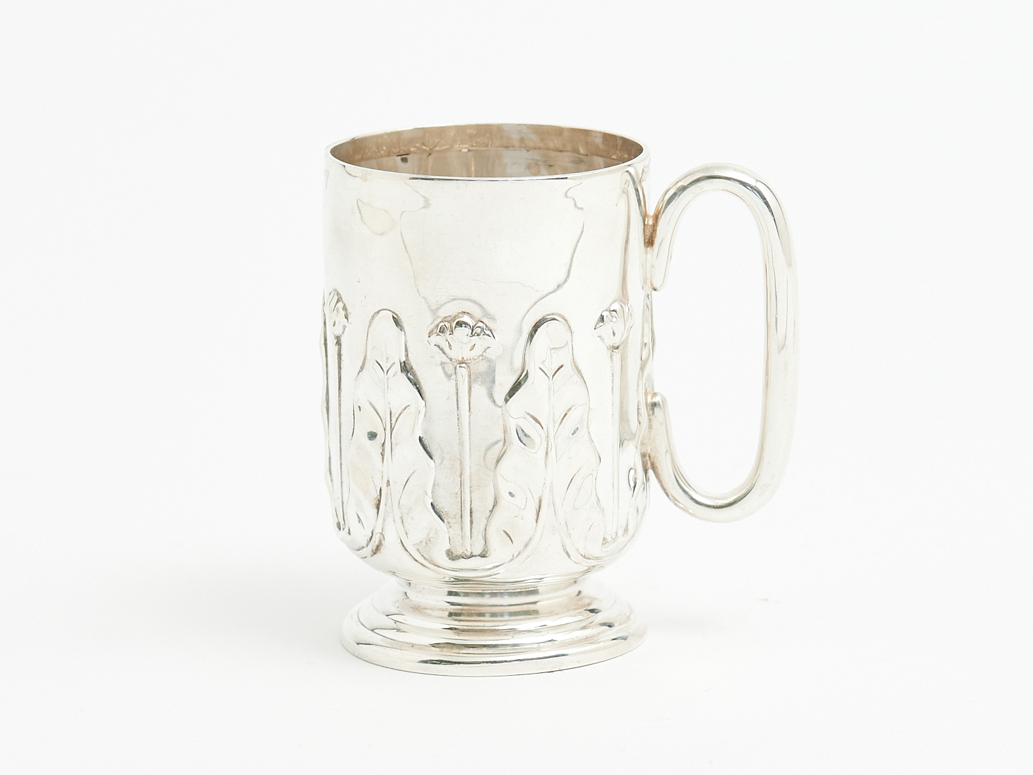 A STERLING SILVER ART NOUVEAU RAISED PATTERN CHRISTENING CUP – 112 GRAMS H.8.5CM, LEONARD JOEL LOCAL DELIVERY: SMALL