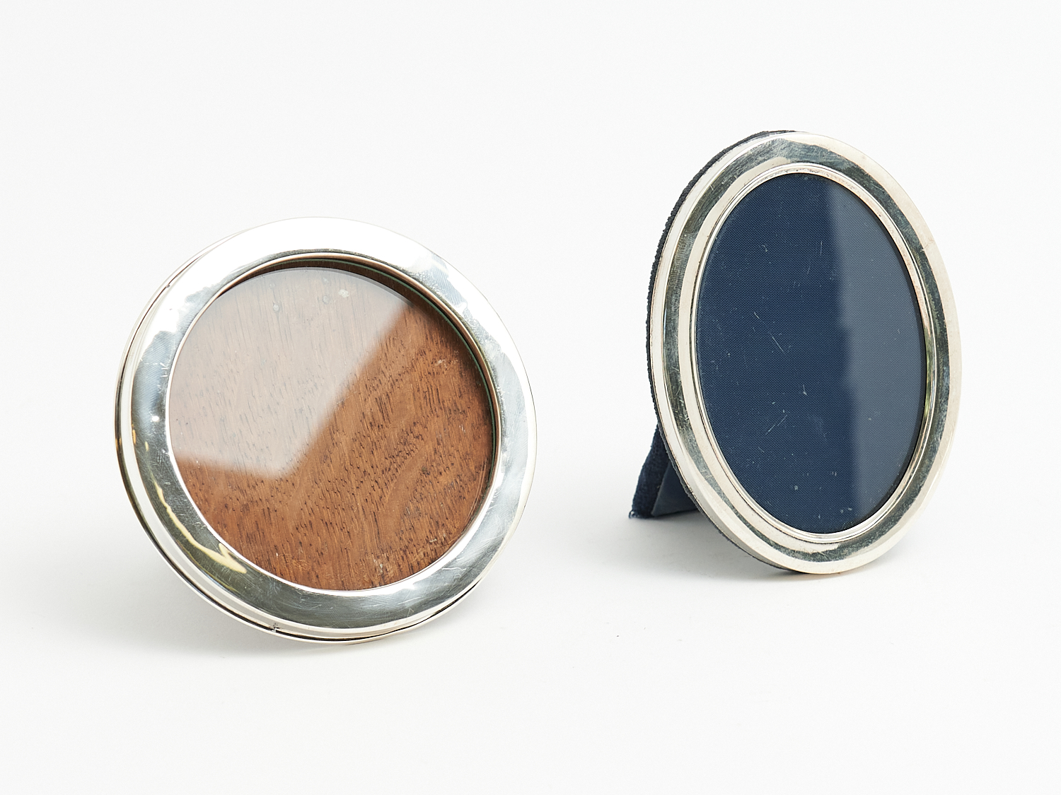 TWO STERLING SILVER PICTURE FRAMES ONE ROUND AND ONE OVAL H.11CM (LARGEST), LEONARD JOEL LOCAL DELIVERY: SMALL