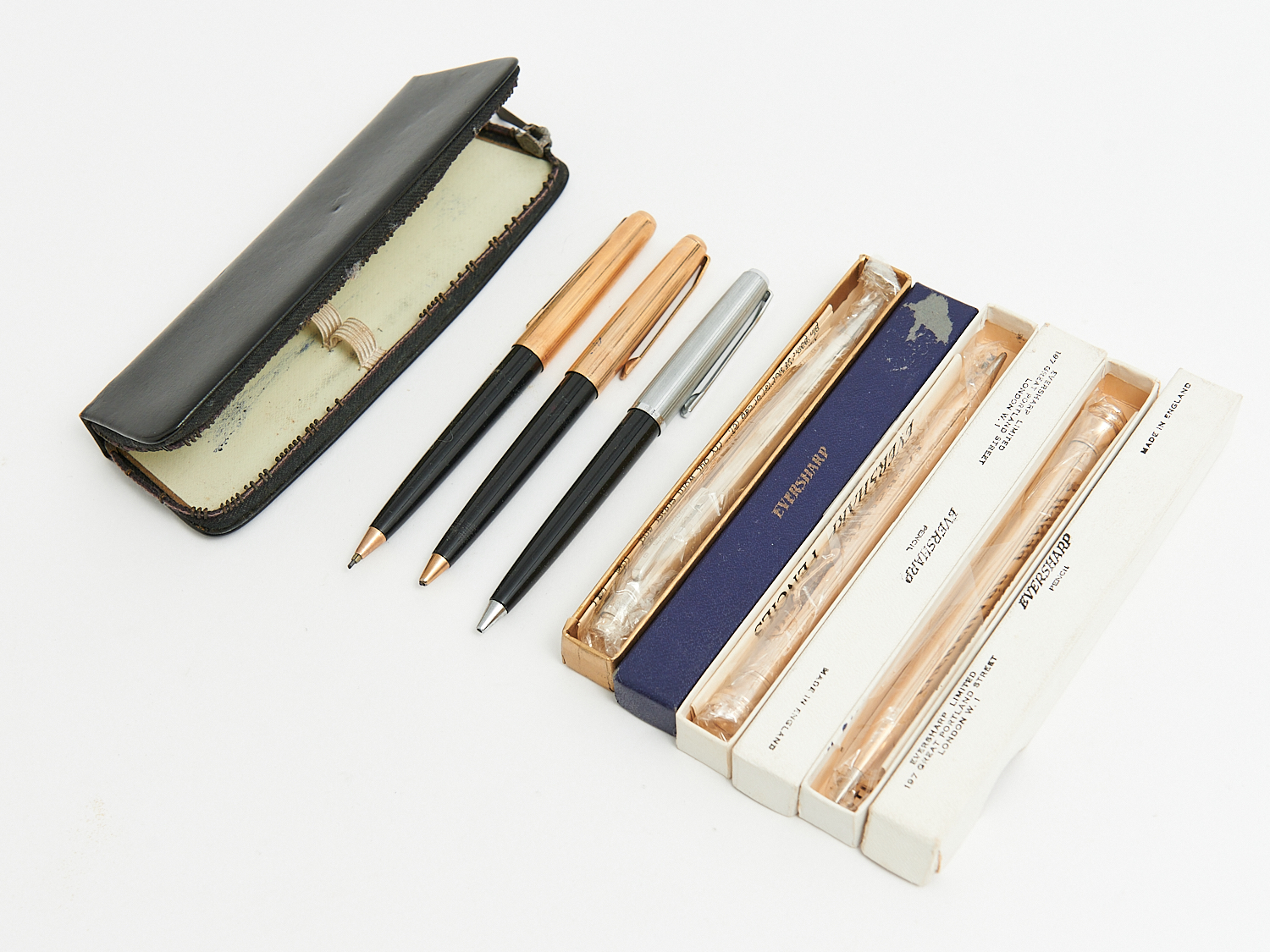 A GROUP OF PROPELLING PENCILS INCLUDING LEATHER CASE SET OF THREE PELICAN AND THREE EVERSHARP, LEONARD JOEL LOCAL DELIVERY: SMALL