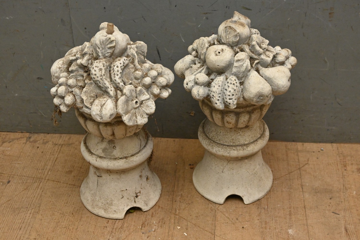 A PAIR OF CONCRETE CORNUCOPIAS (A/F) (45H X 30D CM) (PLEASE NOTE THIS HEAVY ITEM MUST BE REMOVED BY CLIENTS OR CARRIERS AT THE CUSTOMERS EXPENSE. LEONARD JOEL STAFF CANNOT ASSIST CARRYING THIS ITEM)