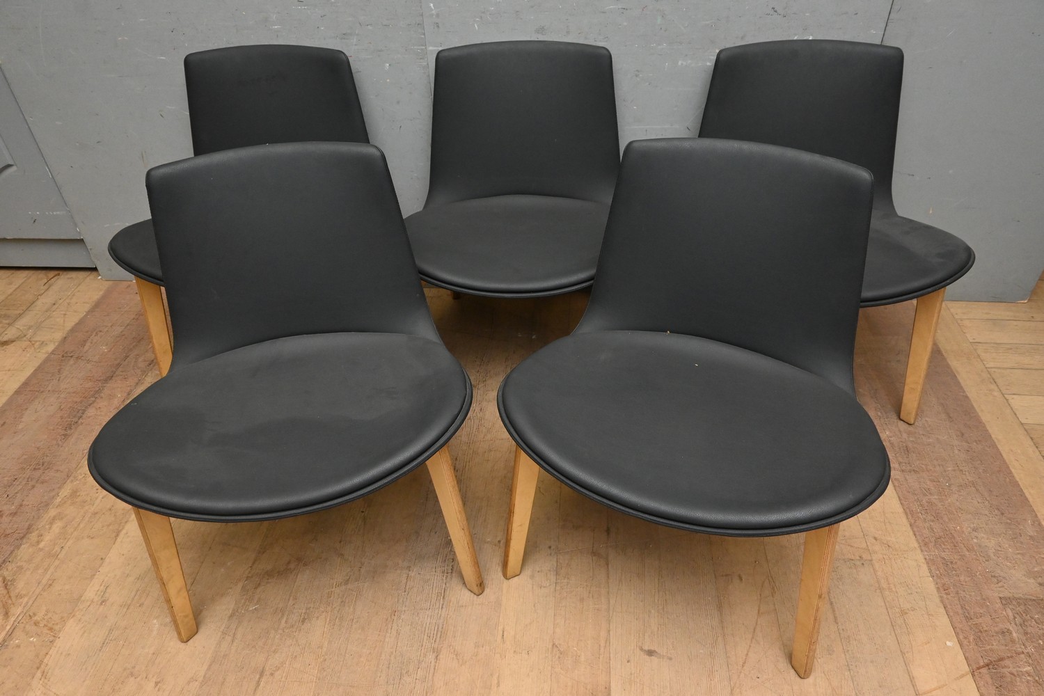 A SET OF FIVE CONTEMPORARY DINING CHAIRS (A/F) (76H X 65W X 57D CM) (LEONARD JOEL DELIVERY SIZE: X-LARGE)