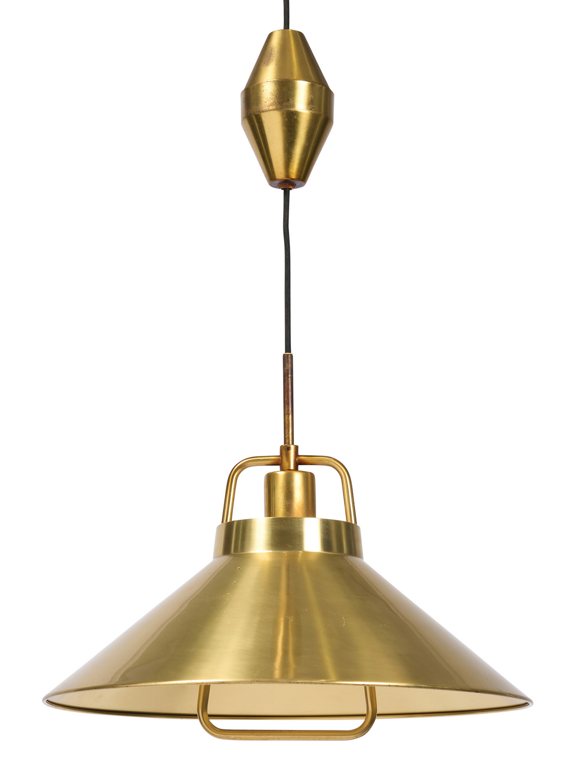 Marks and surface scratches consistent with the age and previous use of the light are present throughout. A few minor dents and stains. Minor patina development to areas and fittings. Would benefit from a clean/polish but otherwise has no major losses. Adjustment system seems to function. Overall in good condition.