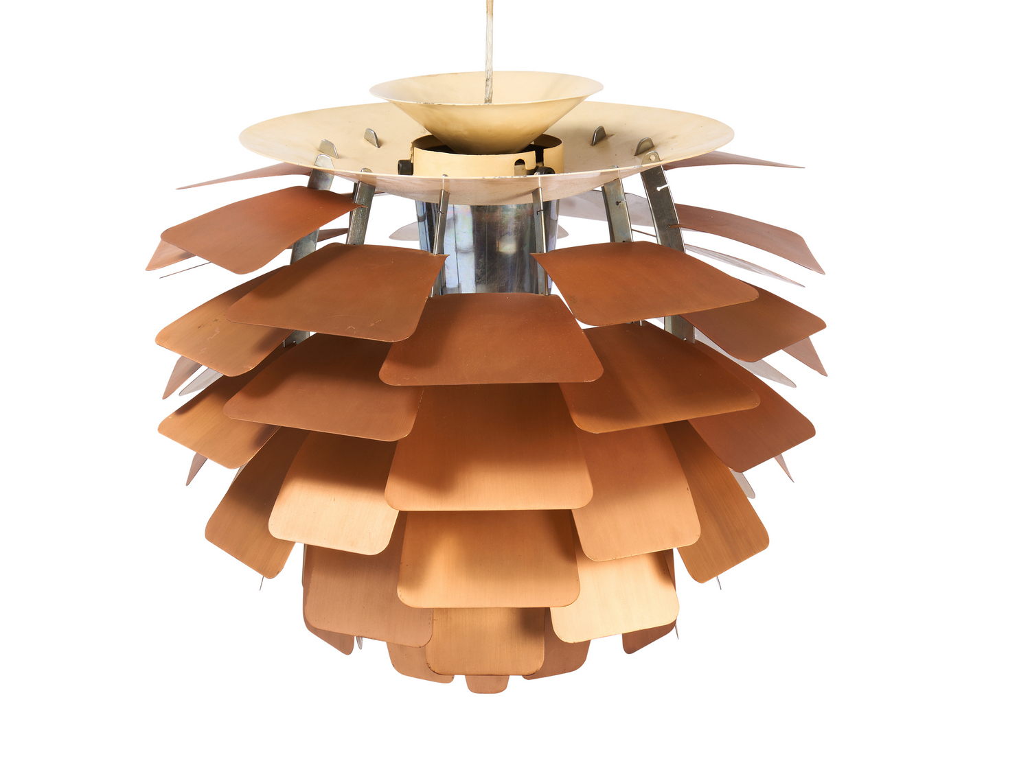 Leaves: Punched copper, Top shade: spun steel, Frame: steel, Suspension: aluminium