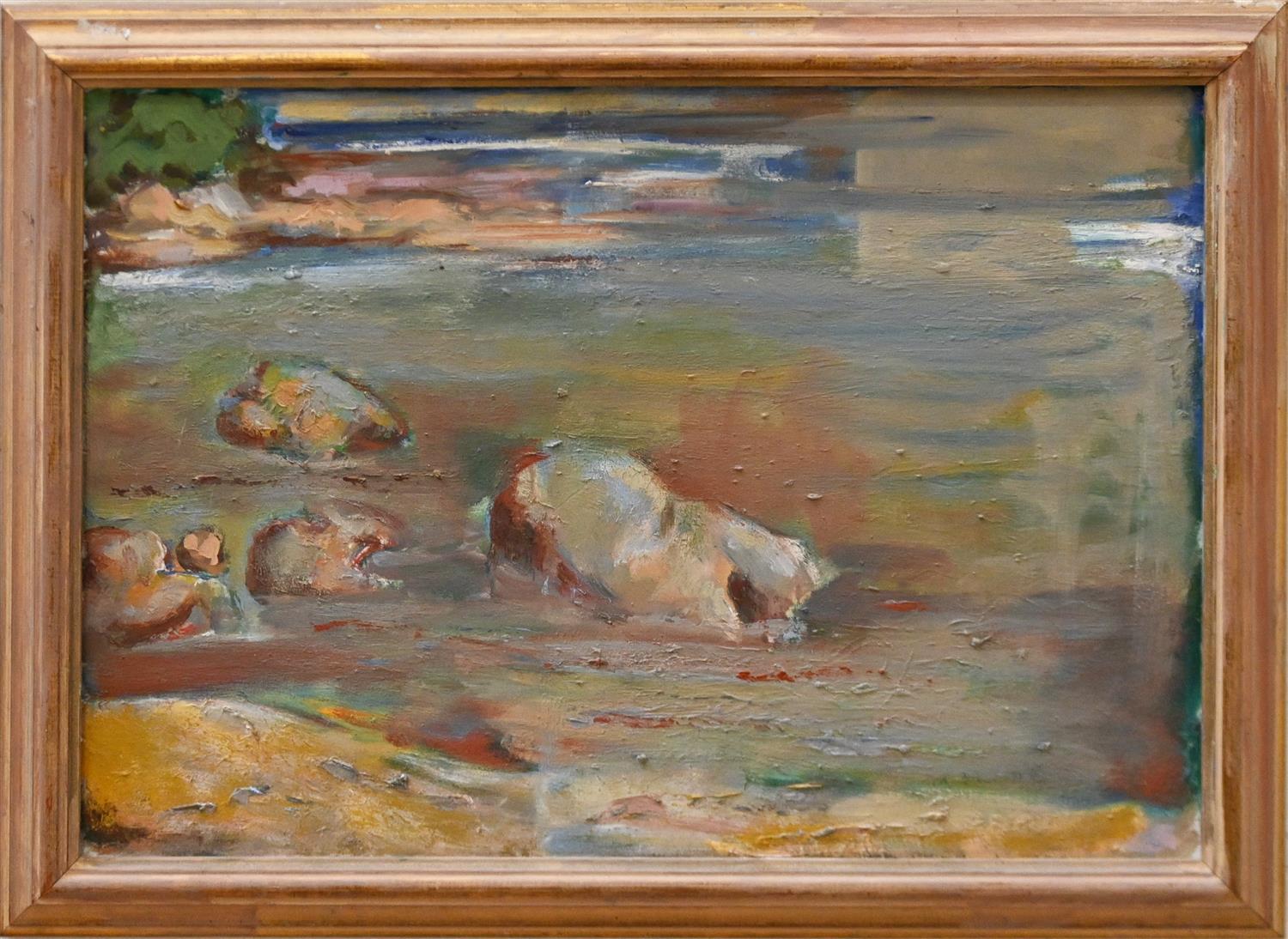 JULIAN ROSSI ASHTON, FOREST LANDSCAPE, OIL ON BOARD, SIGNED LOWER LEFT, 30.5 X 54CM, FRAME: 50 X 72CM
