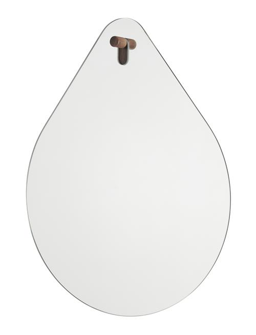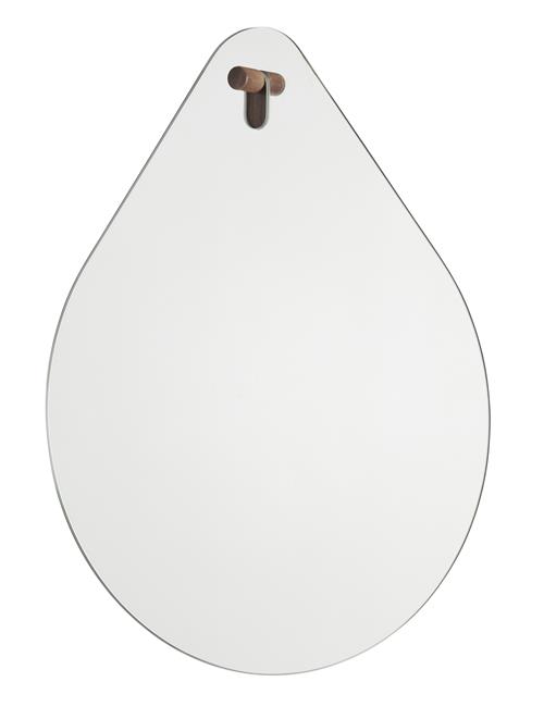 Mirrored glass in the shape of a water drop. Wooden hanging pegs.