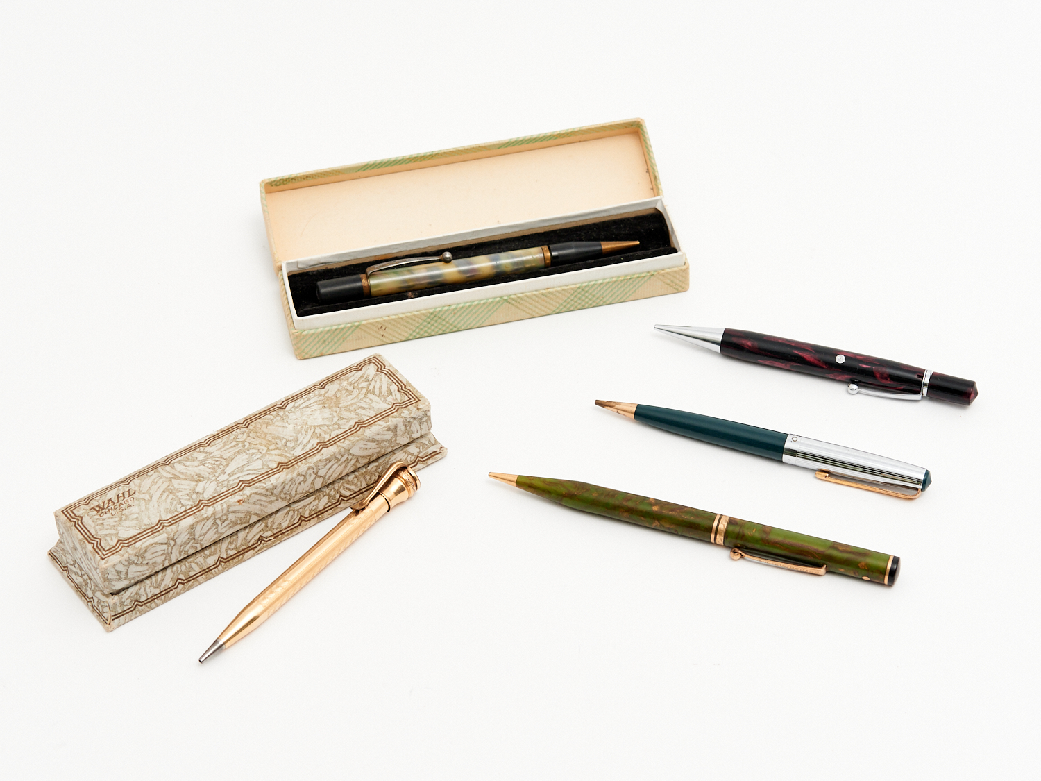 FIVE VINTAGE PROPELLING PENCIL INCLUDING BOXED WAHL PARKER, LEONARD JOEL LOCAL DELIVERY: SMALL