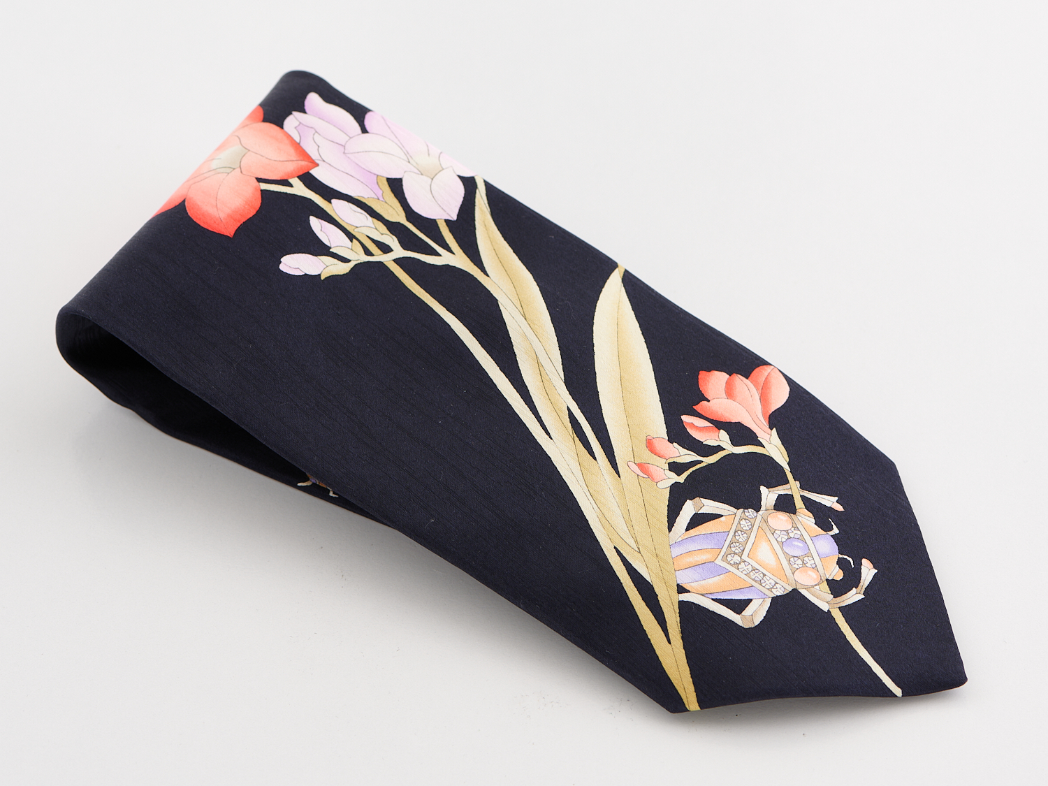 LEONARD, SILK TIE - Tortoise, frog, insect and floral design, No 73280.