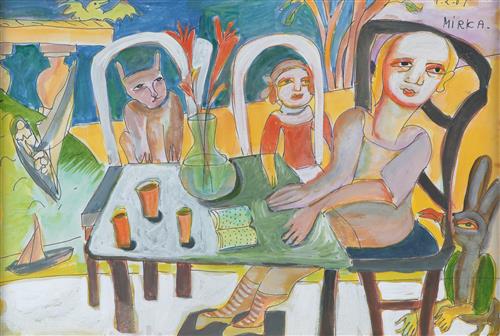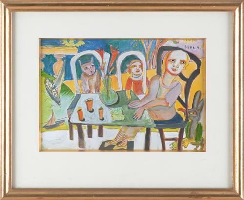 MIRKA MORA (1928-2018) Figures with Bright Sun 1985 watercolour, ink and gouache on paper