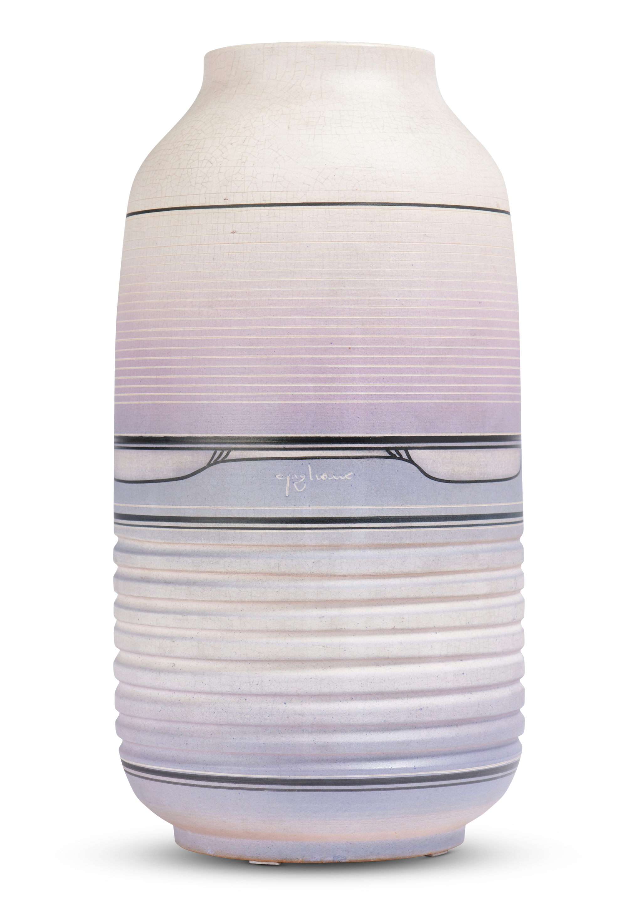 Glazed ceramic in grey, black, purple and pink tones. (Signed Quaglione).