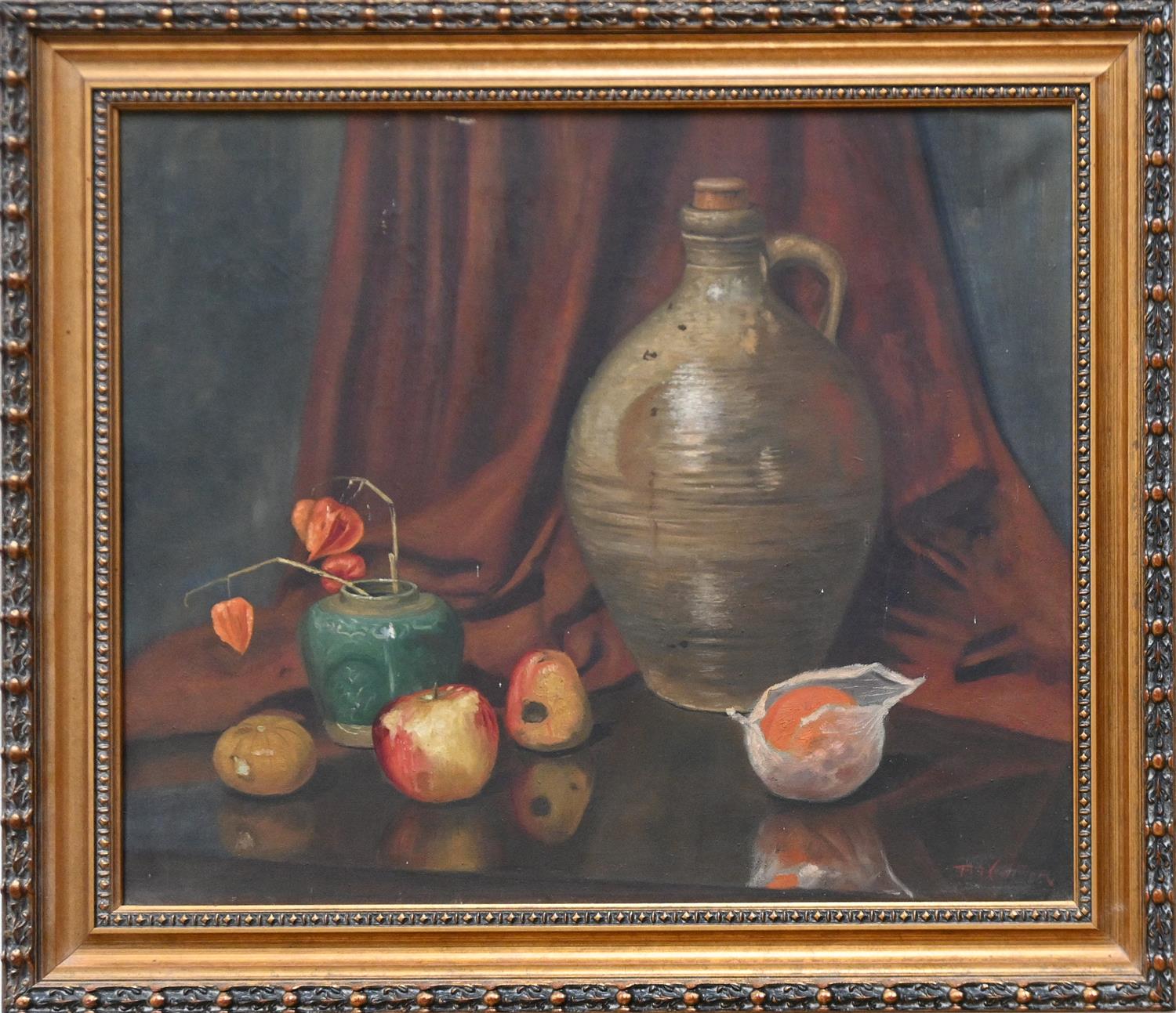 Tear to canvas and paint loss. Abbrasions to upper centra area, largest measuring approximately 2cm. Additional flaking of paint seen to upper left.