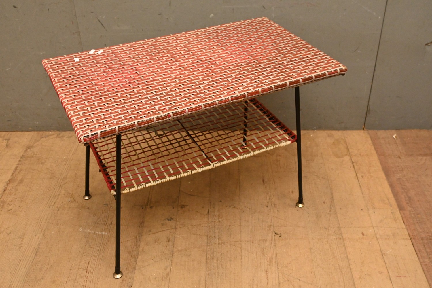 A 1950S PLASTIC WEAVE COFFEE TABLE WITH METAL FRAME (53H X 77W X 46D CM) (LEONARD JOEL DELIVERY SIZE: LARGE)