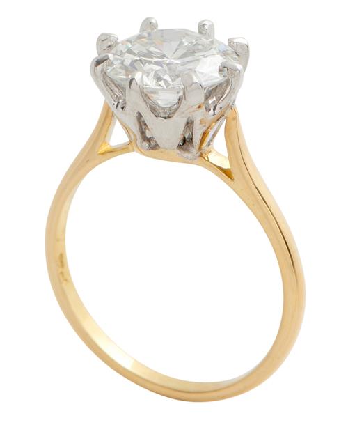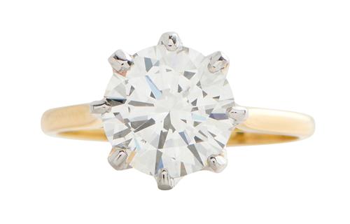 Claw-set with a brilliant-cut diamond weighing approximately 2.37 carats, size M.