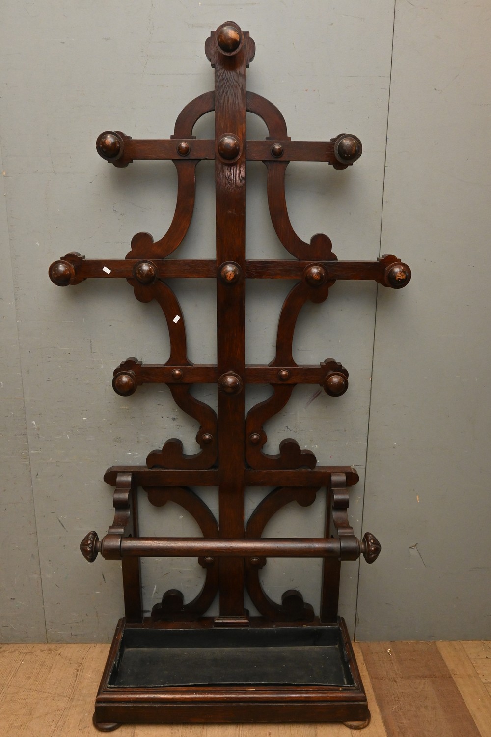 A STAINED HARDWOOD HALL STAND / COAT RACK (A/F) ( 197H X 102W X 38D CM) (LEONARD JOEL DELIVERY SIZE: X - LARGE)