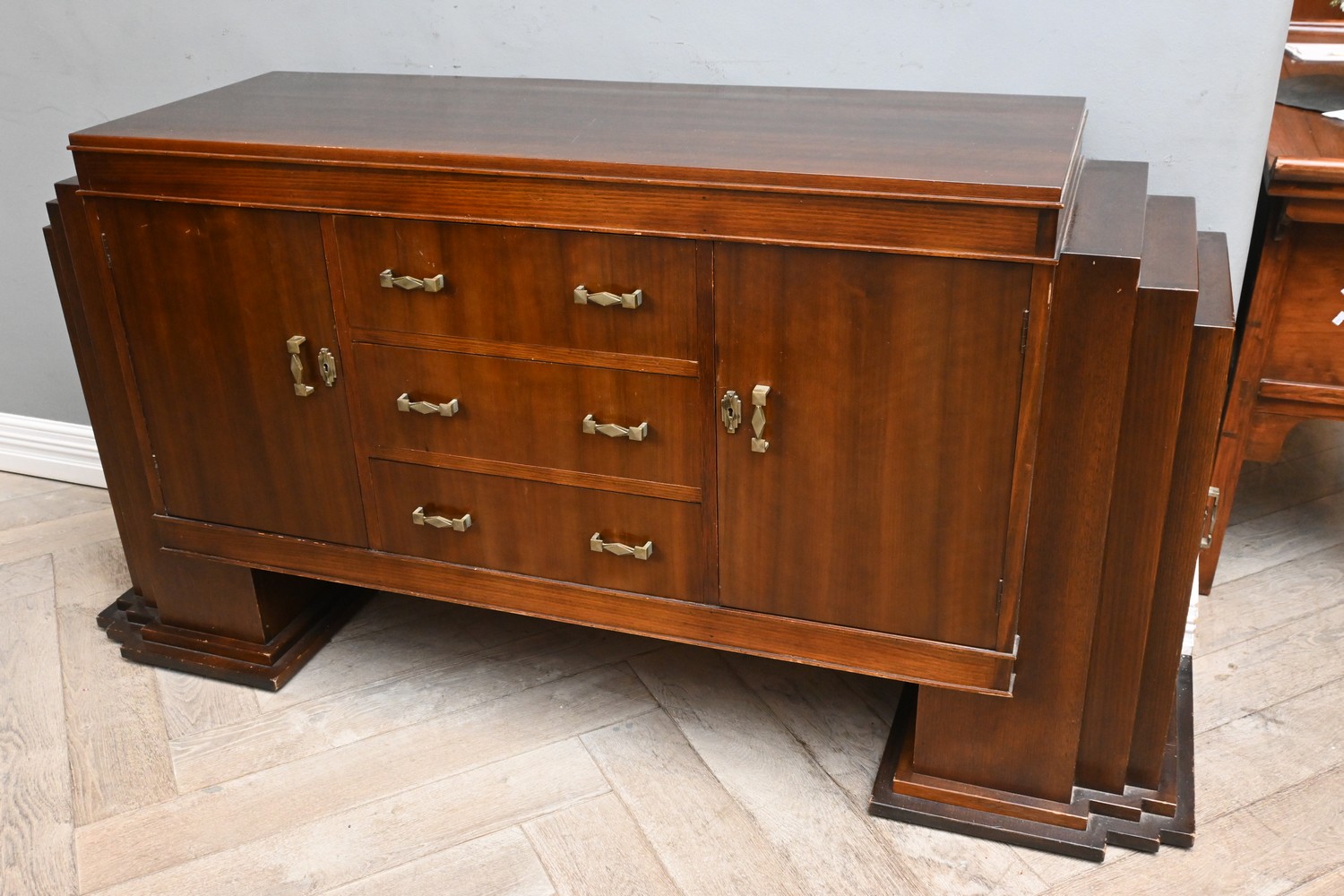 AN ART DECO TWO DOOR SIDEBOARD (A/F) (95H X 180W X 53D CM) (PLEASE NOTE THIS HEAVY ITEM MUST BE REMOVED BY CLIENTS OR CARRIERS AT THE CUSTOMERS EXPENSE. LEONARD JOEL STAFF CANNOT ASSIST CARRYING THIS ITEM)