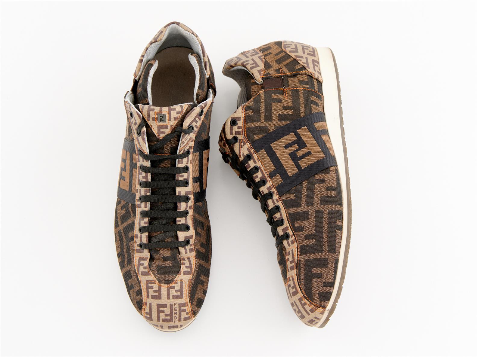 FENDI, PAIR OF MEN'S LOW TOP SNEAKERS - Styled in Zucca canvas, with black grosgrain detail, marked size 10.