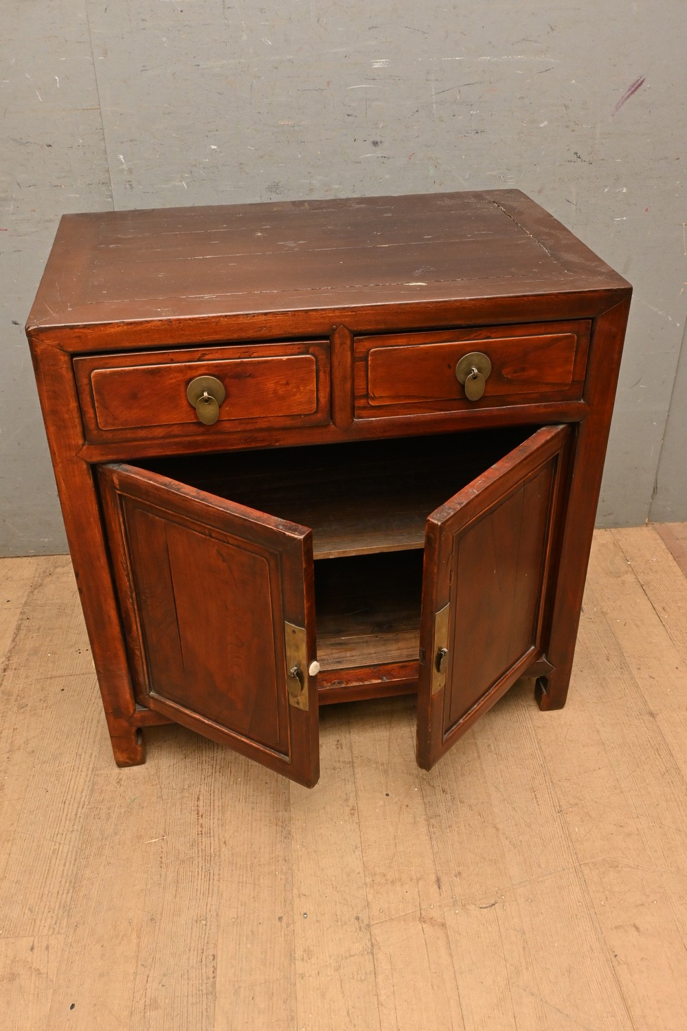 A CHINESE TIMBER CABINET (A/F) (78H X 79W X 51D CM) (LEONARD JOEL DELIVERY SIZE: X-LARGE)