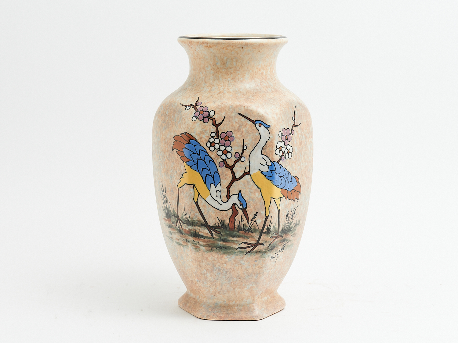 A FRENCH ENAMELLED PORCELAIN VASE FEATURING TWO BIRDS, SIGNED A DUBOIS, H.38CM, LEONARD JOEL LOCAL DELIVERY: MEDIUM