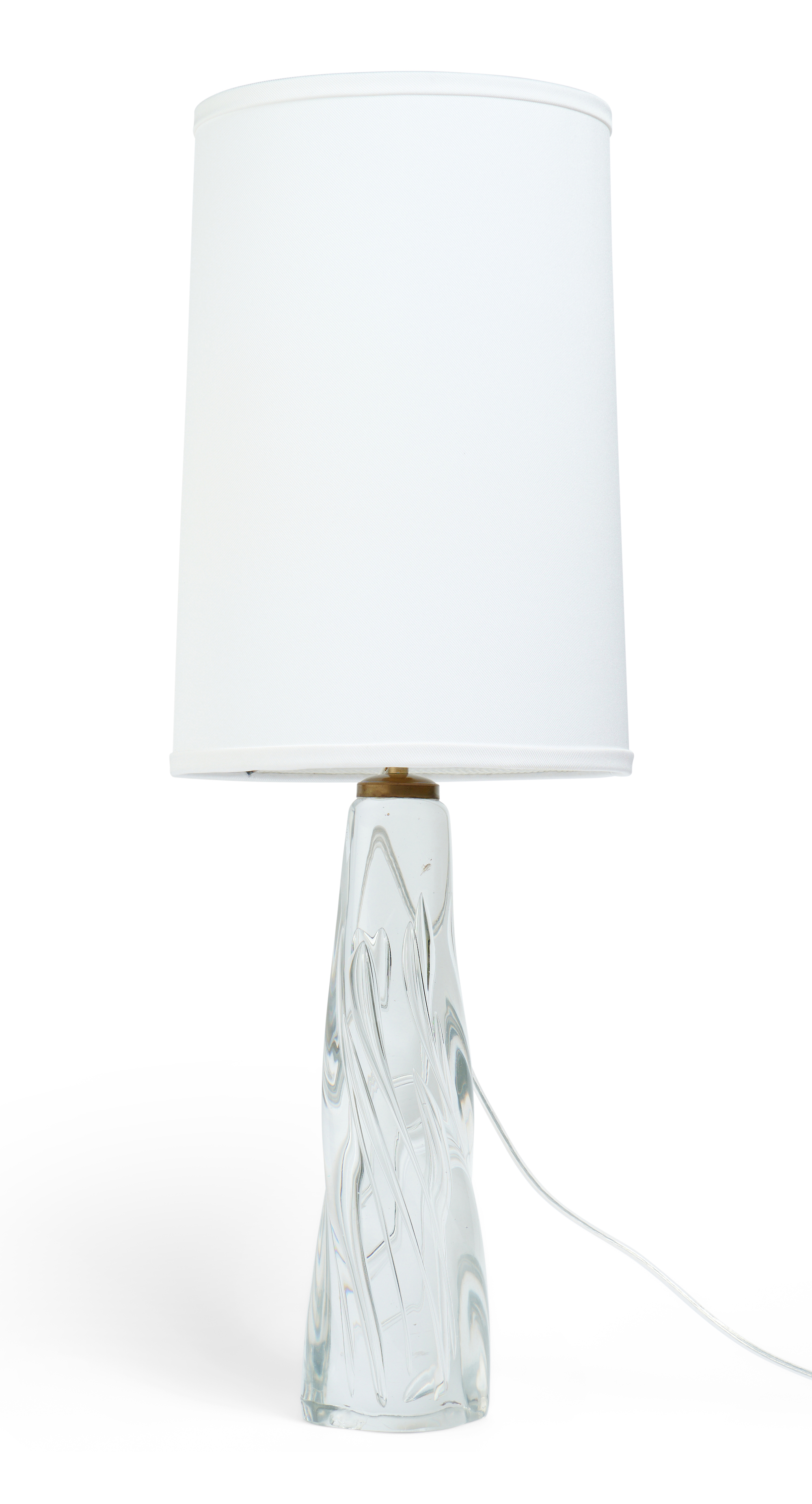Minor surface scratches present to glass with 5cm bruise and very small chip to base of lamp.