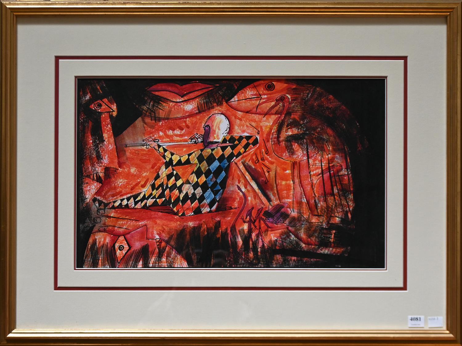 § GRAHAM FRANSELLA, ACROBATS, GOUACHE ON PAPER (FOUR SHEETS), SIGNED LOWER RIGHT, 113.5 X 152CM, FRAME SIZE: 123.5 X 163CM PROVENA...