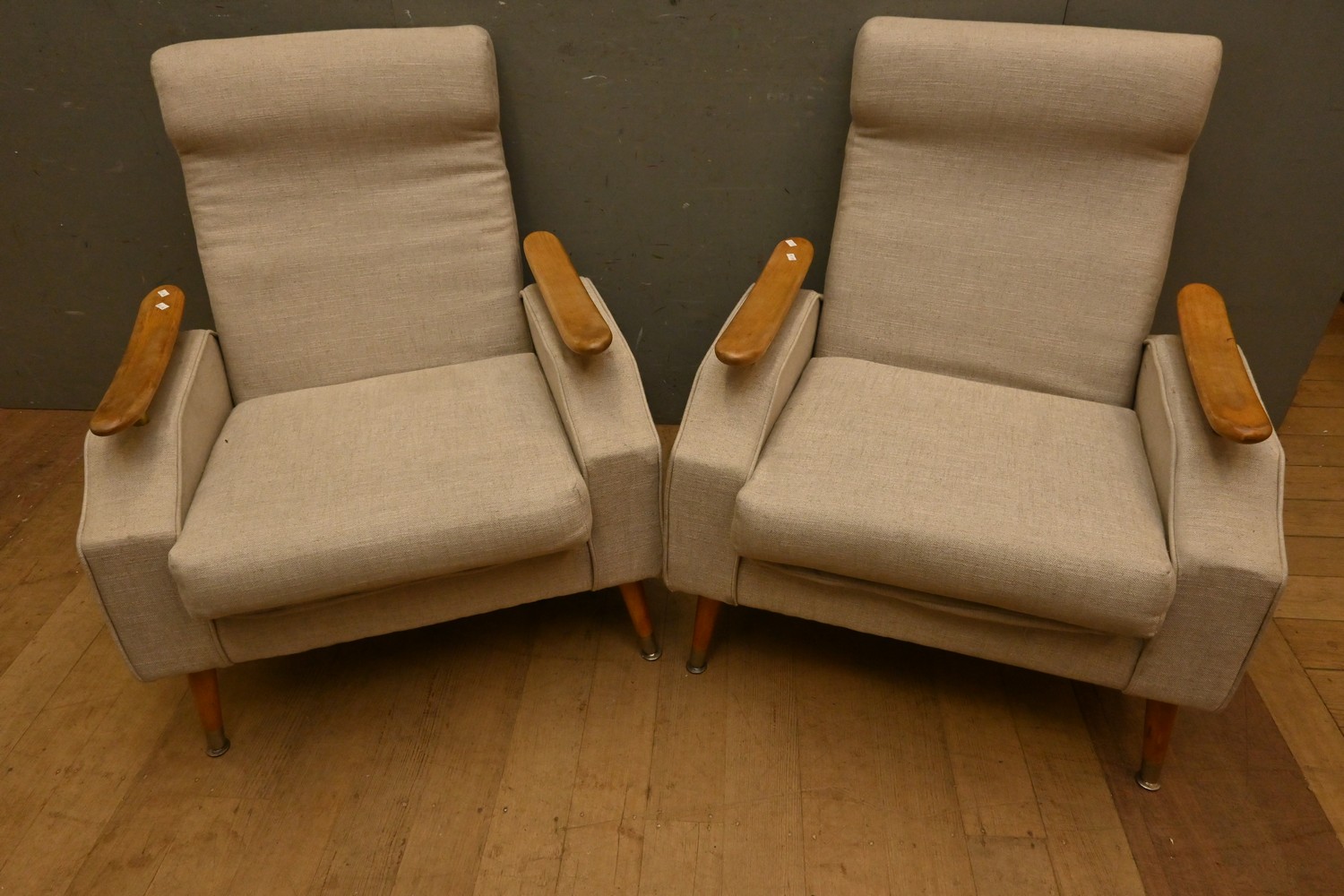 MID-CENTURY PAIR OF EUROPEAN ARMCHAIRS (A/F) (LEONARD JOEL DELIVERY SIZE: X-LARGE)