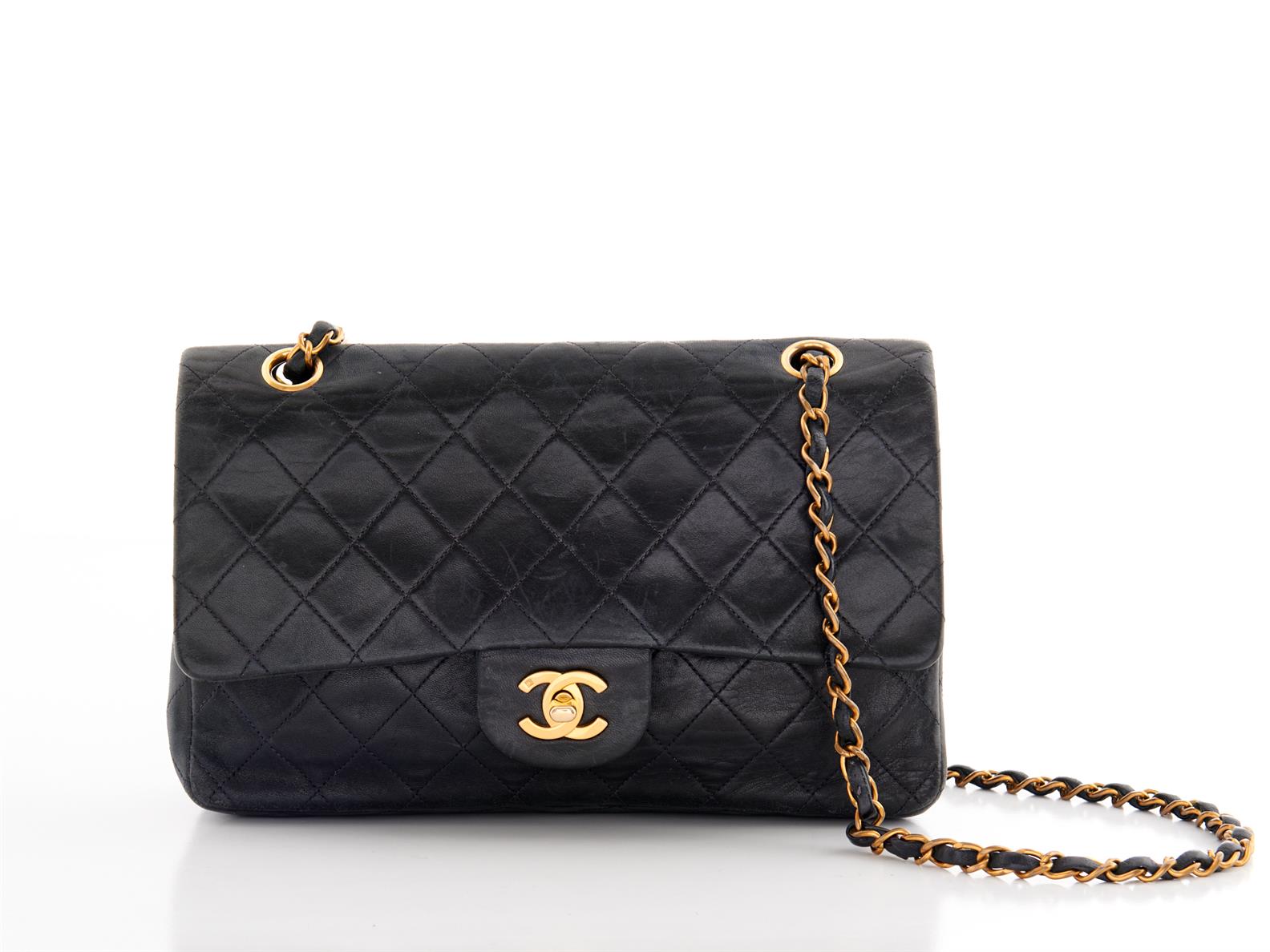 CHANEL, CLASSIC TRI-COLOUR DOUBLE FLAP BAG - Styled in red, navy and light blue quilted calf leather with interlaced chain shoulder...