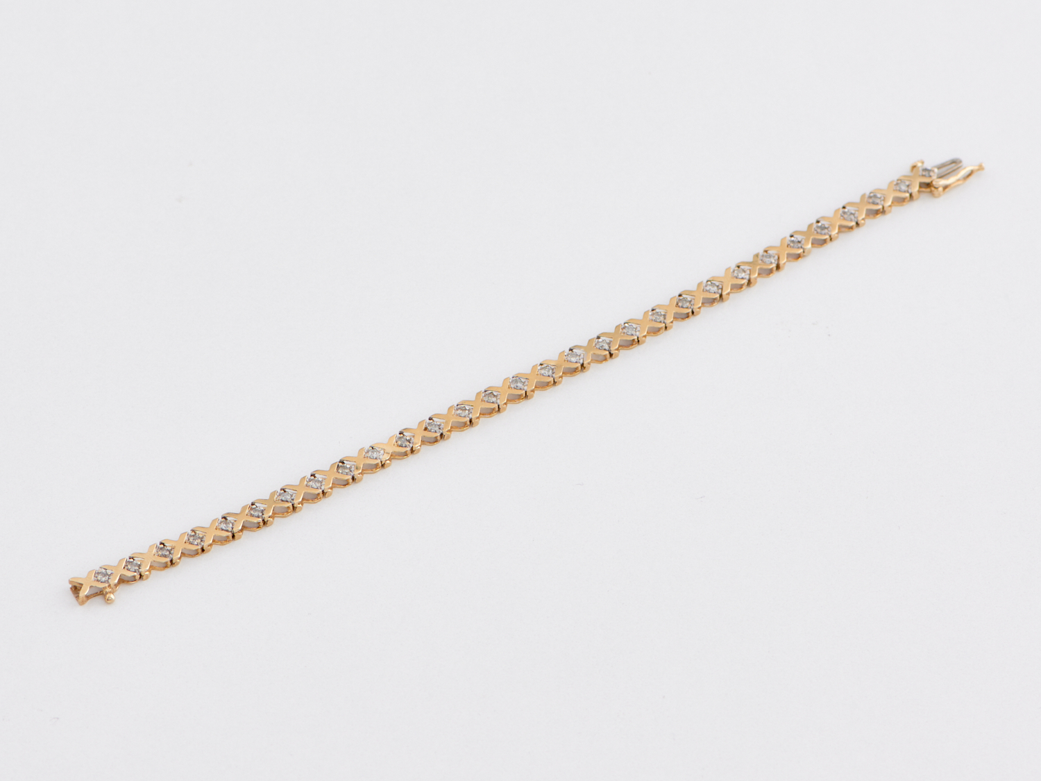 A DIAMOND BRACELET IN 9CT GOLD, THE DIAMONDS TOTALLING APPROXIMATELY 0.50CTS, LENGTH 180MM, WEIGHT 7.0GMS
