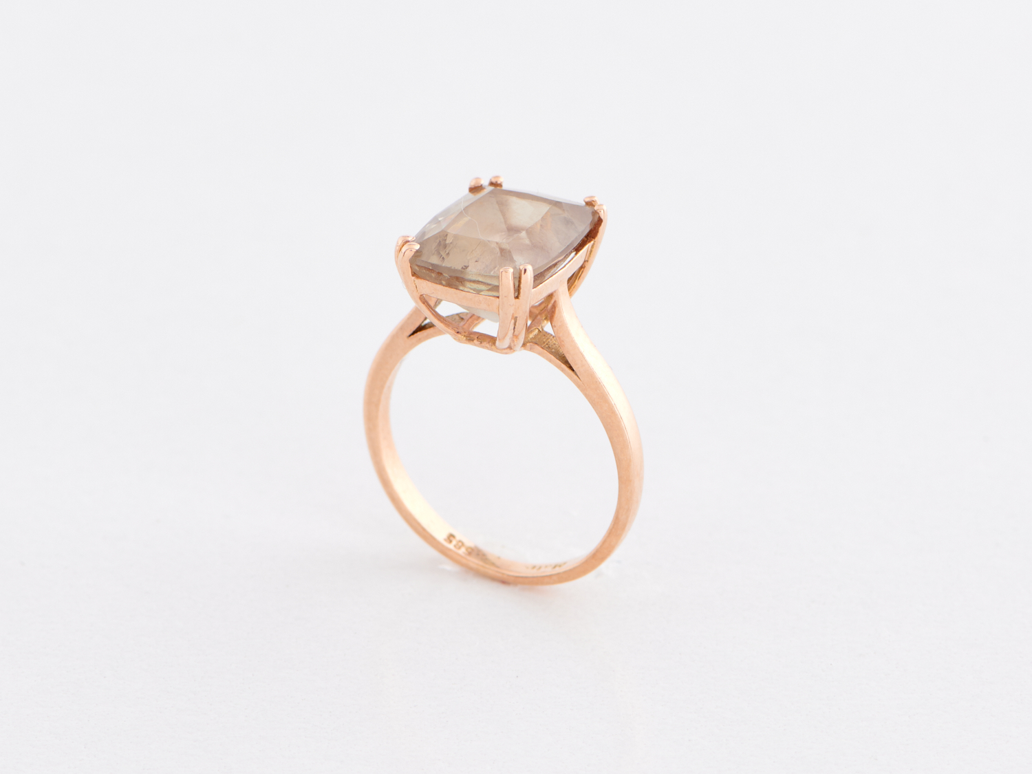 A QUARTZ SET DRESS RING IN 14CT GOLD, RING SIZE M, WEIGHT 3.8GMS