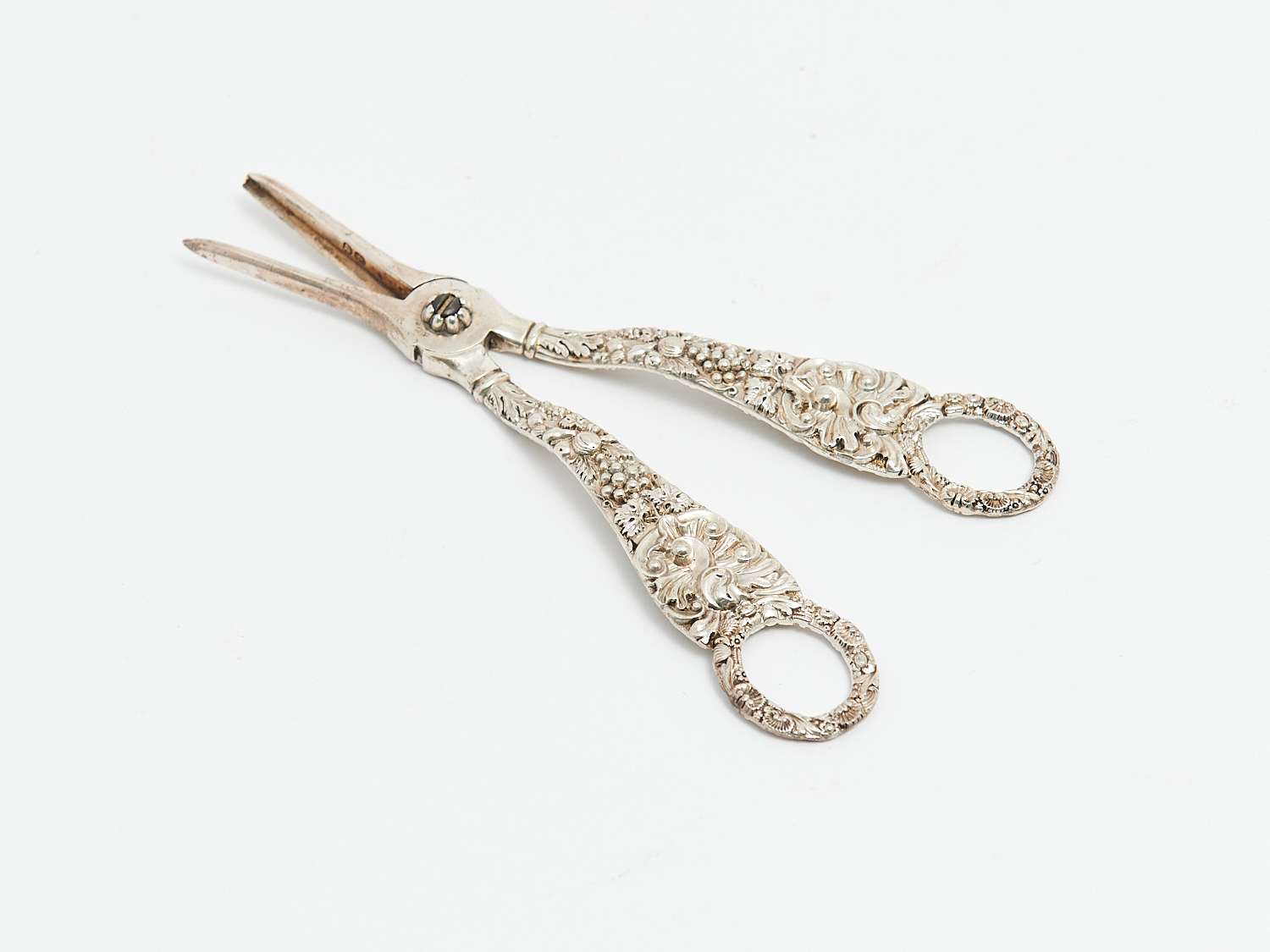 A PAIR OF STERLING SILVER GRAPE SCISSORS L.17CM, LEONARD JOEL LOCAL DELIVERY: SMALL