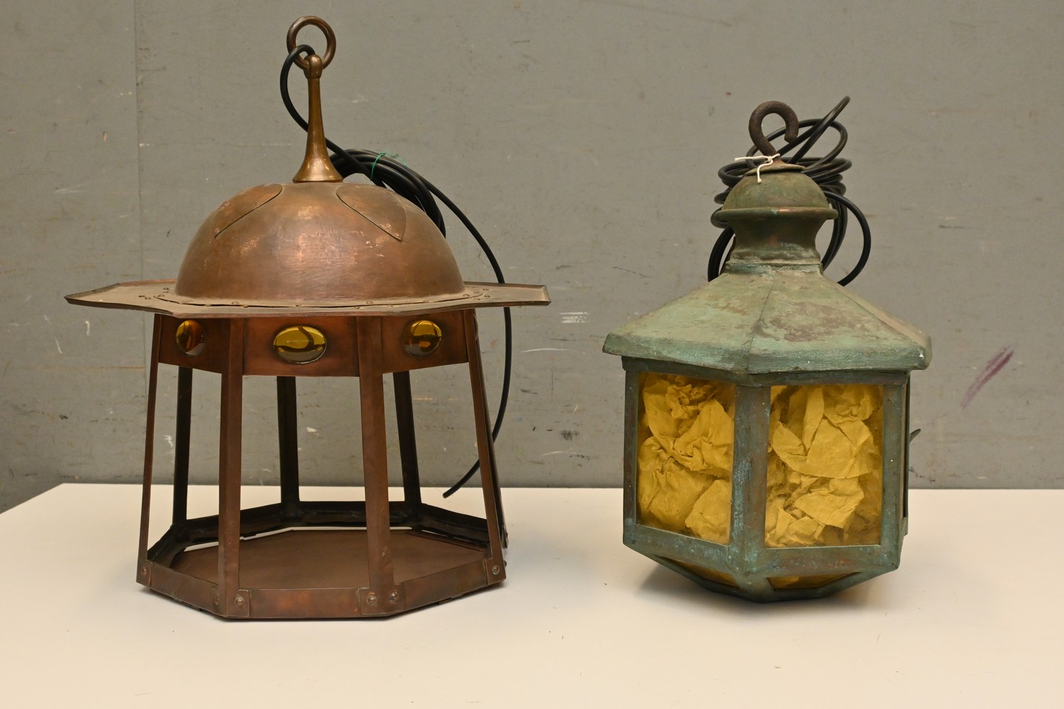 TWO DECORATIVE CEILING LANTERNS (A/F) (50H X 45W X 45D CM) (LEONARD JOEL DELIVERY SIZE: LARGE)