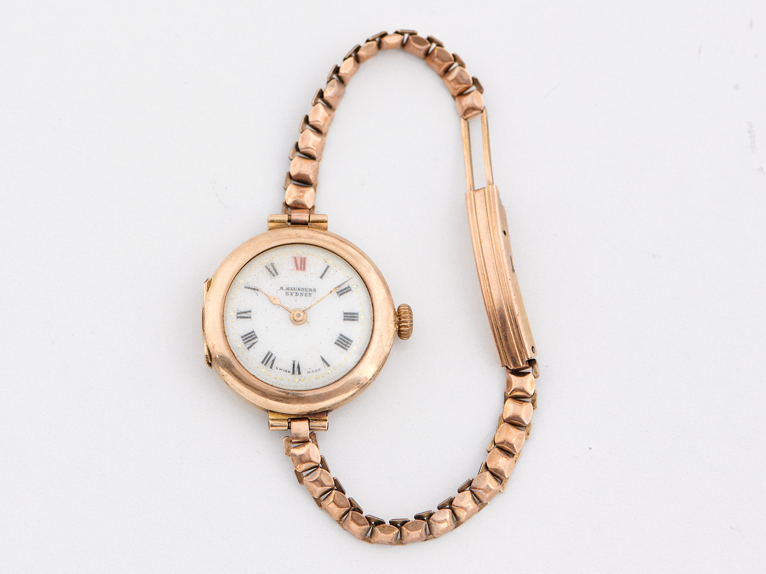 AN A.SAUNDERS WATCH IN 9CT GOLD, TO GOLD PLATED BANDS, WATCH FACE DIAMETER 26MM, LENGTH 170MM