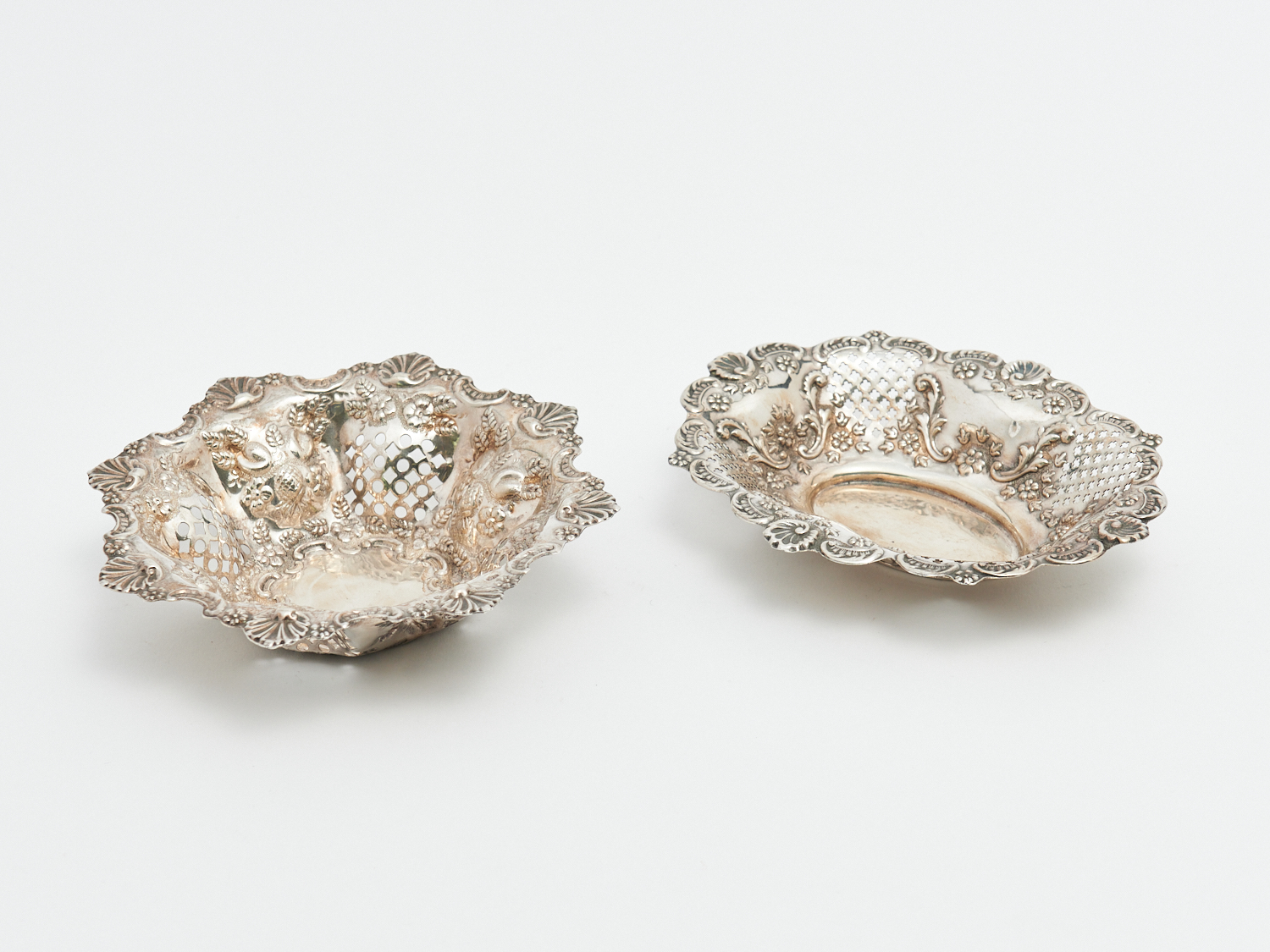 TWO STERLING SILVER PIERCED AND EMBOSSED BOWLS 206 GRAMS DIA.16.5CM, LEONARD JOEL LOCAL DELIVERY: SMALL