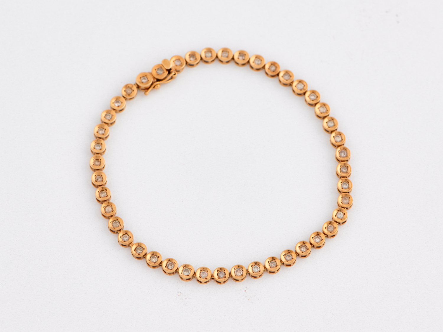 A DIAMOND LINE BRACELET IN 18CT GOLD, THE DIAMONDS TOTALLING APPROXIMATELY 0.40 CTS DIAMONDS, LENGTH 190MM, WEIGHT 7.04 GRAMS.