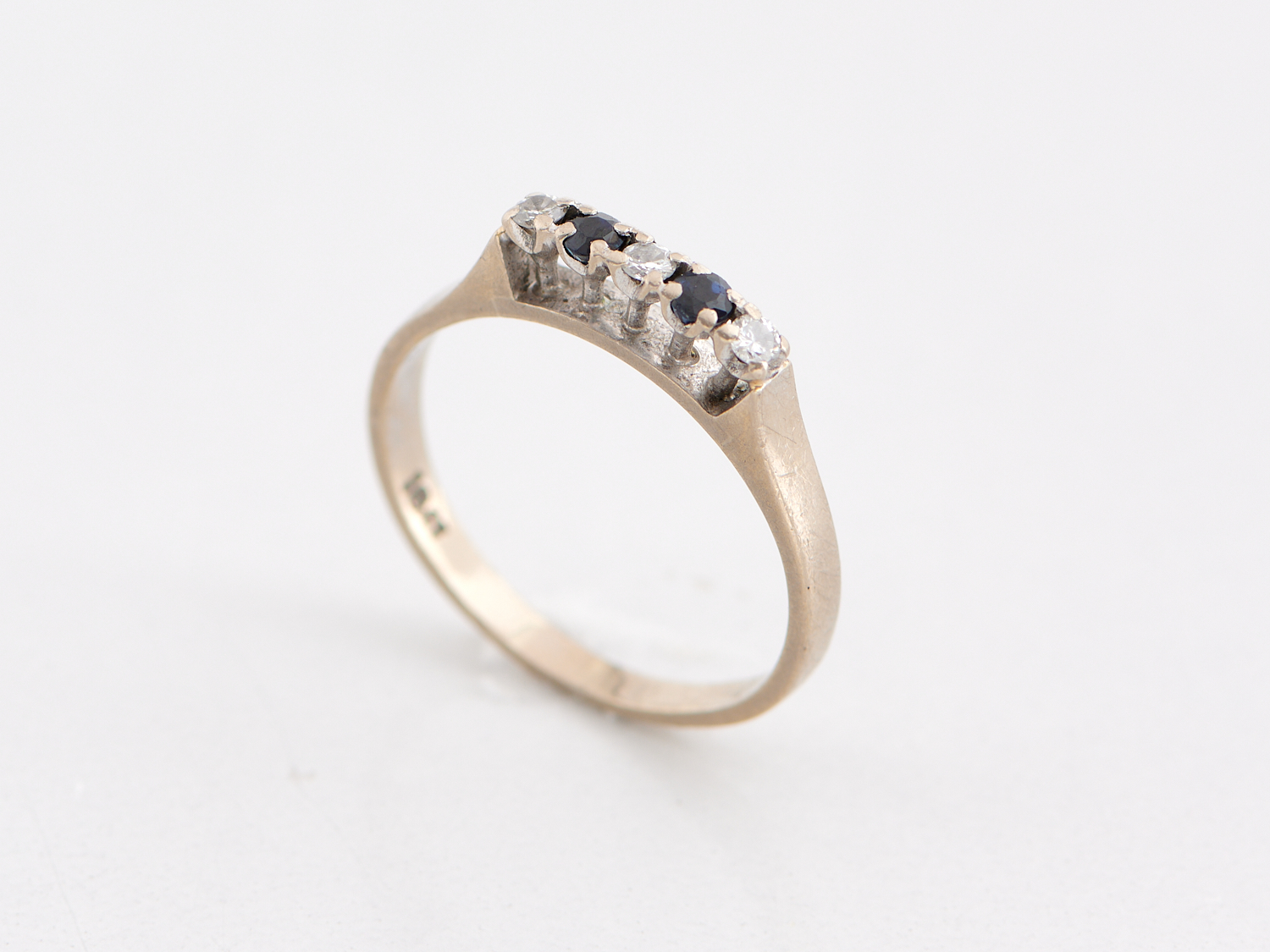A SAPPHIRE AND DIAMOND RING IN 18CT WHITE GOLD, RING SIZE K-L, WEIGHT 2.4GMS