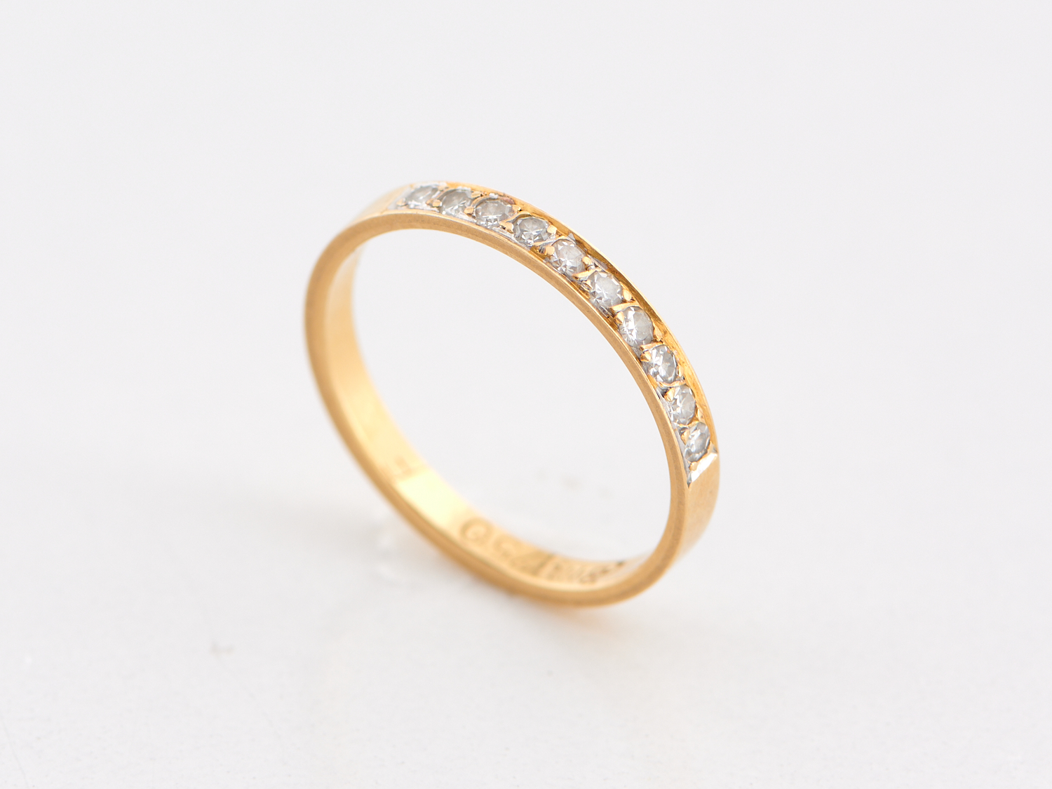 A DIAMOND SET BAND IN 18CT GOLD, RING SIZE L, WEIGHT 1.8GMS
